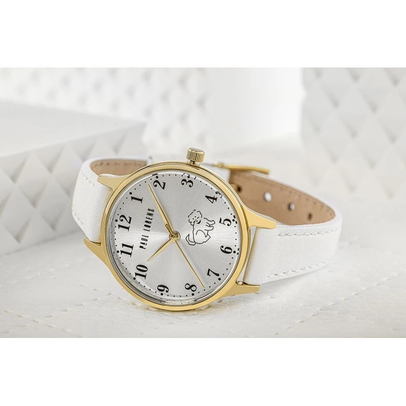 Zlatý obal ladí se stříbrným ciferníkem, na kterém je rozkošný obrázek štěněte, který hodinkám dodává hravý nádech. tato decentní grafika dělá z hodinek jedinečný a osobní doplněk, který bude vaše dítě nosit s hrdostí. zlaté ručičky a indexy dodávají hodinkám eleganci, zatímco díky chytře navržené vteřinové ručičce, která se ladně pohybuje, se učení čtení času stane zábavným a vzrušujícím dobrodružstvím.