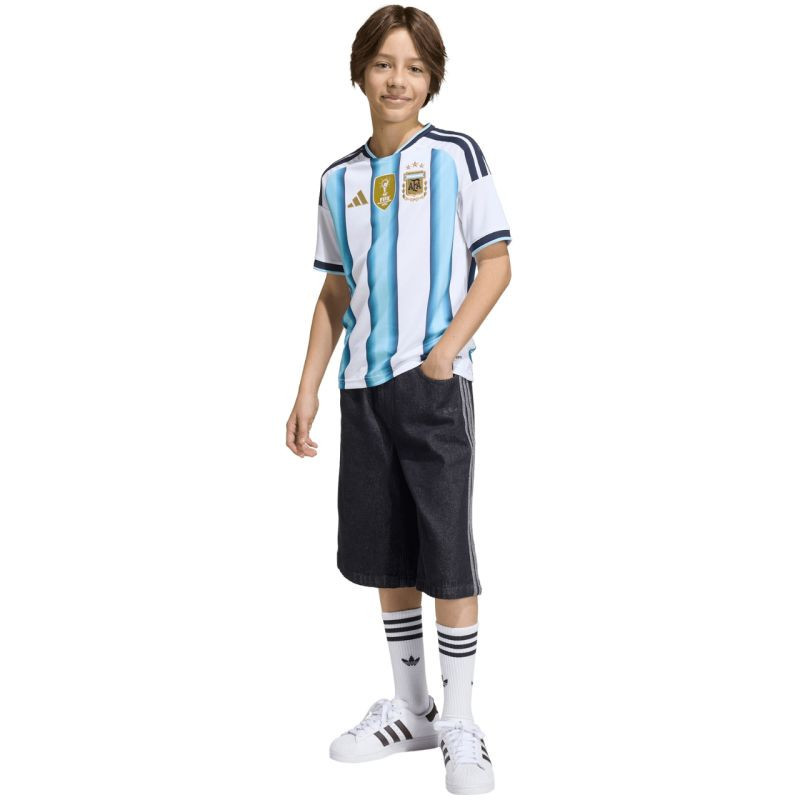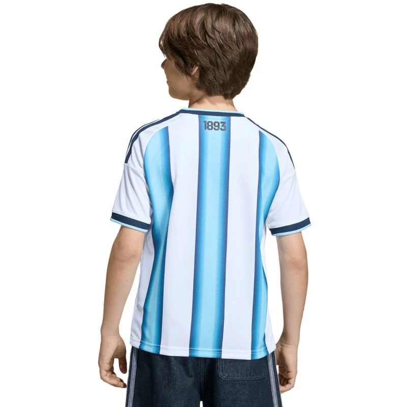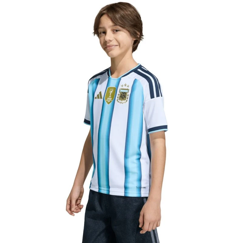 Koszulka dla dzieci adidas Argentyna 26 KA8119 Koszulka podstawowa adidas Argentyna 26. Design inspirowany historią drużyny narodowej Argentyny. Technologia adidas Climacool dba o komfort termiczny w trakcie wysiłku, odprowadzając nadmiar wilgoci. Szybkoschnący materiał dzięki Quick Drying. Trzy paski na rękawach oraz naszyte emblematy drużyny na froncie. Materiał: 100% poliester z recyklingu