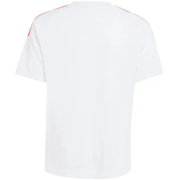 Dětský ligový dres adidas Tiro 26 bílá, černá a červená KR0369 Dětský ligový dres adidas Tiro 26 je ideální na fotbalové turnaje. Pravidelný střih. Kulatý výstřih. Síťované panely. Technologie Climacool. Recyklovaná vlákna. Materiál: 100% recyklovaný polyester.