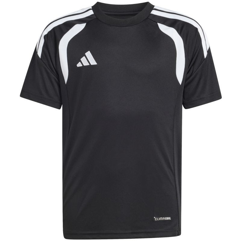 Dětský ligový dres adidas Tiro 26 černý KB1319 Dětský ligový dres adidas Tiro 26 je ideální na fotbalové zápasy. regular fit. kulatý výstřih. síťované panely. technologie Climacool. recyklovaná vlákna. materiál: 100% recyklovaný polyester.
