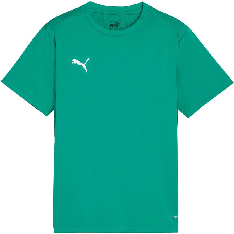 Puma TeamGoal Jersey zelený 658637 05 Dětský dres Puma TeamGOAL Jersey bude ideální na tréninky i zápasy.Je vyroben z odolné a funkční syntetické tkaniny, která zajišťuje prodyšnost a odvod vlhkosti.Jednoduchý, výrazný design a barevné provedení a malé logo Puma na hrudi podtrhují sportovní styl a umožňují vytvořit fotbalovou soupravu, která bude ladit s barvami vašeho týmu.Pravidelný střih s krátkými rukávy.Technické detaily:- Materiál: 100% recyklovaný polyester.