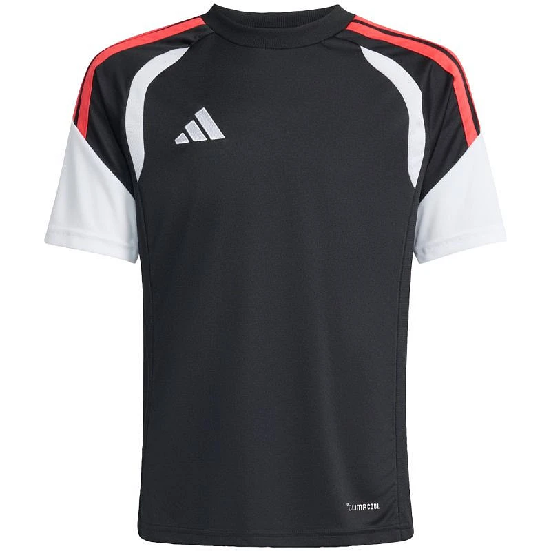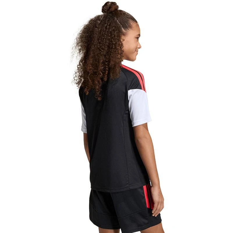 Dětské tričko adidas Tiro 26 League Jersey černá/červená KB1326 Dětské tričko adidas Tiro 26 League Jersey je ideální tričko na fotbal. regular fit. kulatý výstřih. síťované panely. technologie Climacool. recyklovaná vlákna. materiál: 100% recyklovaný polyester.