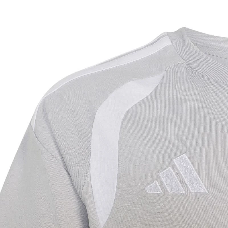 Dětský dres adidas Tiro 26 League Jersey šedý JY7227 Dětský dres adidas Tiro 26 League Jersey je ideální na fotbalové zápasy. regular fit. kulatý výstřih. síťované panely. technologie Climacool. recyklovaná vlákna. materiál: 100% recyklovaný polyester.