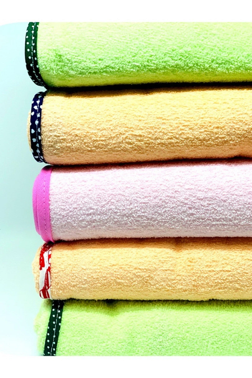 Měkký a lehký ručník se vzorovaným lemováním. Oboustranná tkanina - skvěle nasákavé froté a hřejivá vrstva podobná fleecu. Ručníky jsou lemovány náhodným vzorovaným lemováním.