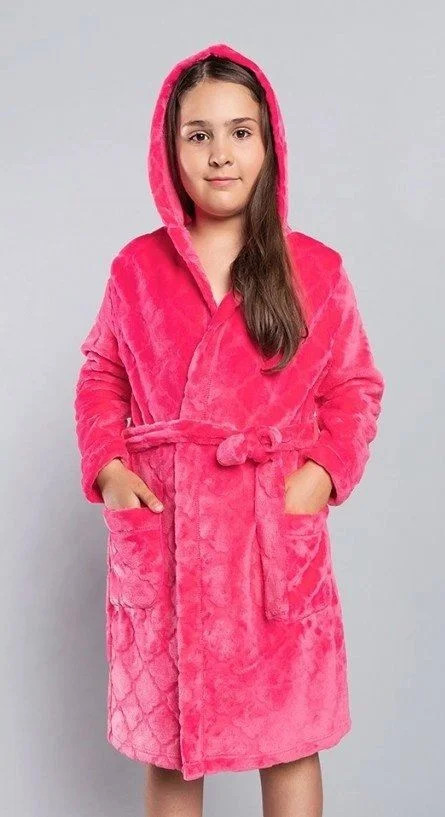 Dívčí župan Lena ITALIAN FASHION - růžová barva - vyrobený z velmi kvalitního protlačovaného materiálu - s dlouhými rukávy - zavazování na pásek - na bocích jsou kapsy - s kapucí - délka nad kolena