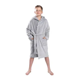 Chlapecký župan Mimas ITALIAN FASHION - šedá barva - z velmi kvalitního materiálu - s dlouhými rukávy - zavazování na pásek - na bocích jsou kapsy - s kapucí - délka nad kolena
