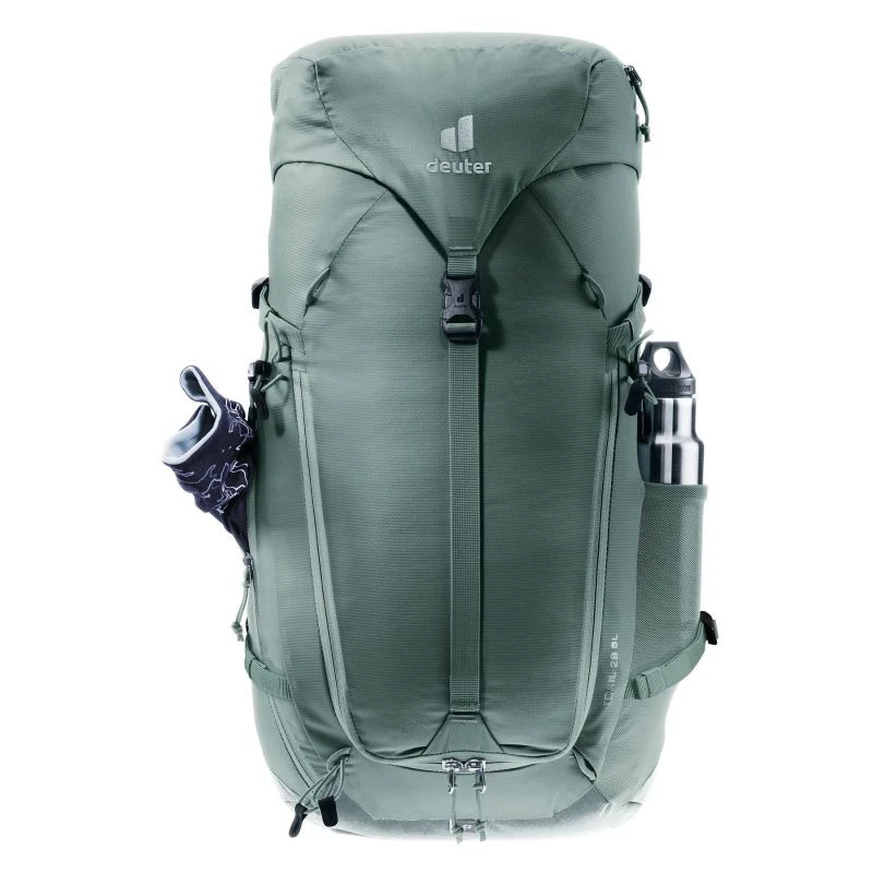 Deuter Trail 28 SL Teal Tin je batoh navržený ve verzi SL, tedy s kratším nosným systémem přizpůsobeným ženské anatomii. Díky nosnému systému Aircontact Trail poskytuje skvělé odvětrávání a stabilitu i při dynamickém pohybu. S objemem 28 l si do něj zabalíte vše potřebné na celodenní túru. Batoh má velkou hlavní komoru, boční kapsy z elastické síťoviny, kapsu ve víku a kapsu na mokré oblečení. Kompatibilní s hydratačním systémem (až 3 l). Vyroben z odolných materiálů odolných proti oděru a povětrnostním vlivům. Vybaven úchyty na trekové hole, poutky na cepín a bederním pásem s kapsou.