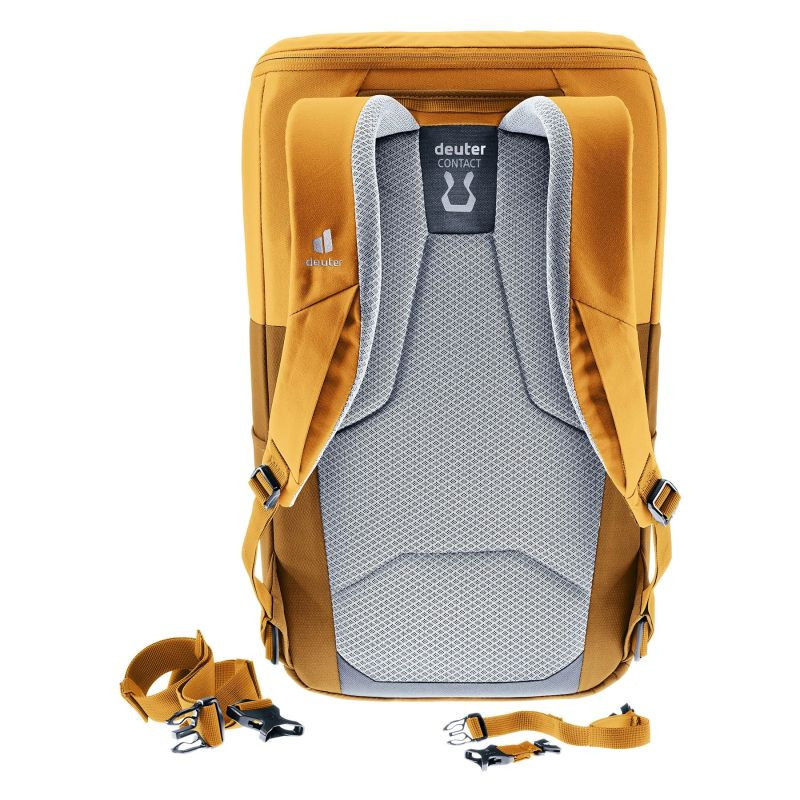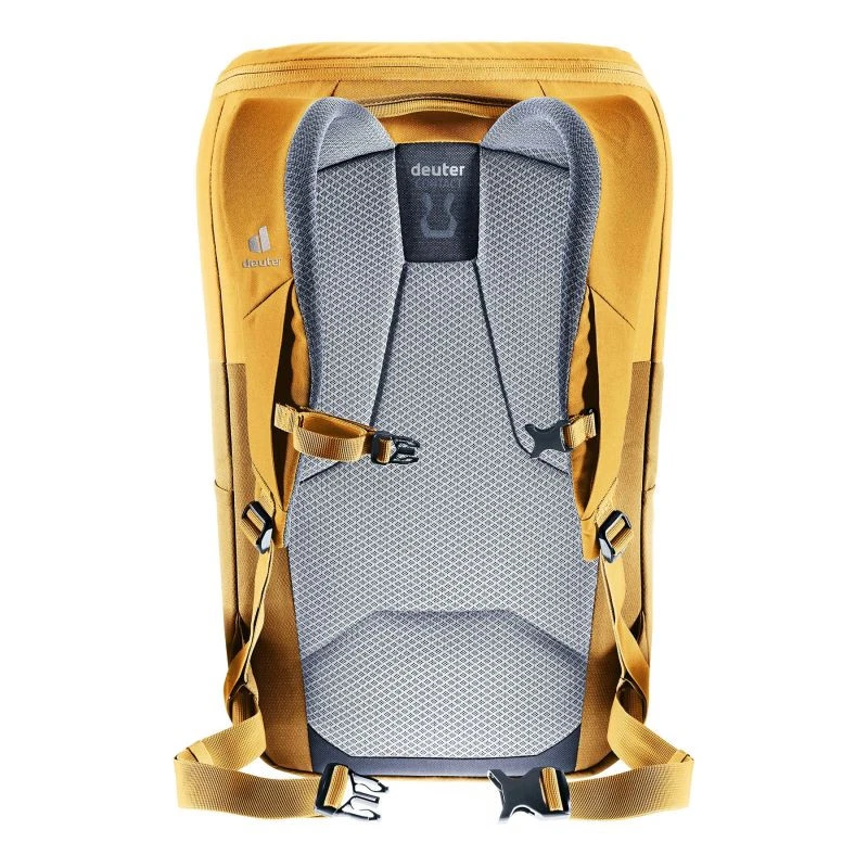 Deuter UP Stockholm Almond Cinnamon je moderní městský batoh o objemu 22 litrů vyrobený ze 100% recyklovaných PET lahví (cca 35). Je navržen s ohledem na ekologii a pohodlí, má polstrovaný zádový panel a ergonomické popruhy pro celodenní pohodlí. Velká hlavní přihrádka pojme dokumenty formátu A4, notebook do velikosti 15,6" a další příslušenství. Batoh je vybaven samostatnou přihrádkou na notebook, vnitřním organizérem, kapsou na tablet a drobné předměty a bočními kapsami na láhev. Díky minimalistickému designu a elegantnímu barevnému provedení je batoh Almond Cinnamon vhodný jak do města, tak pro volný čas.