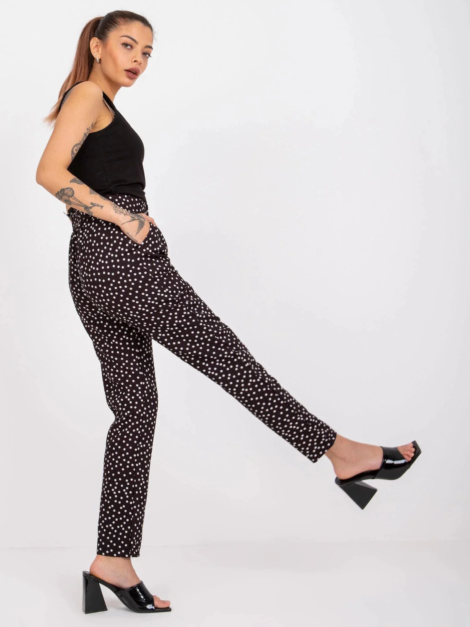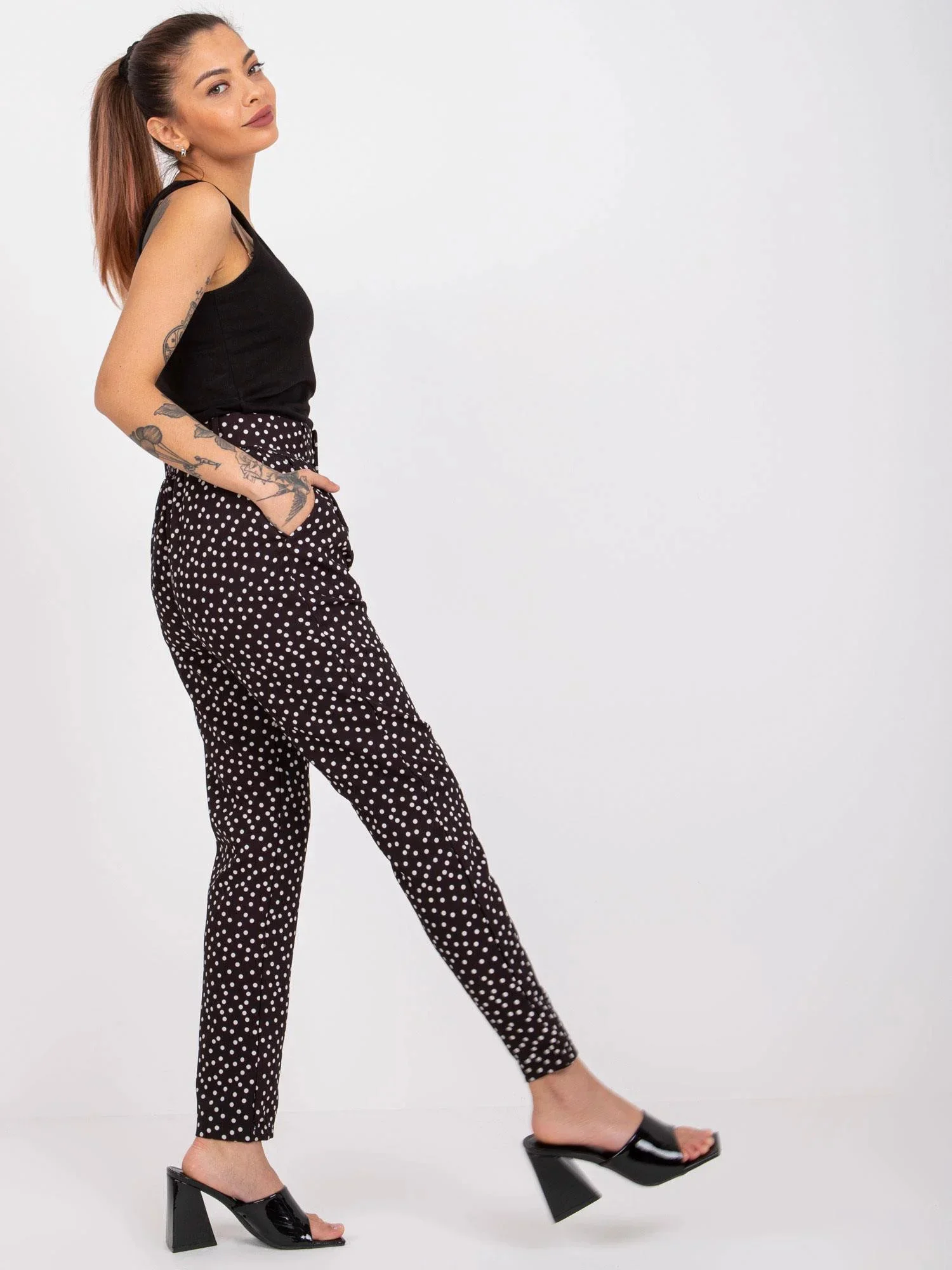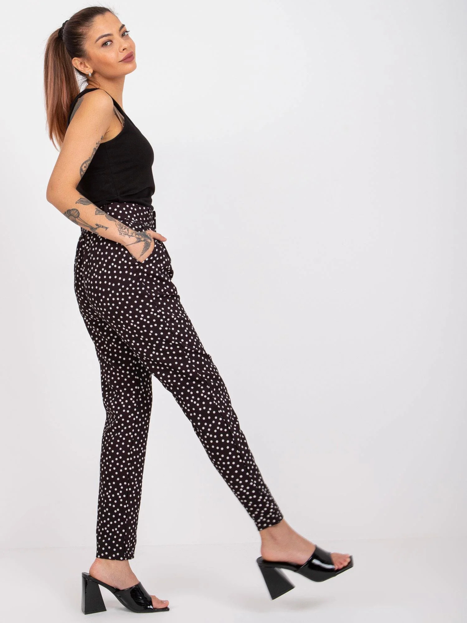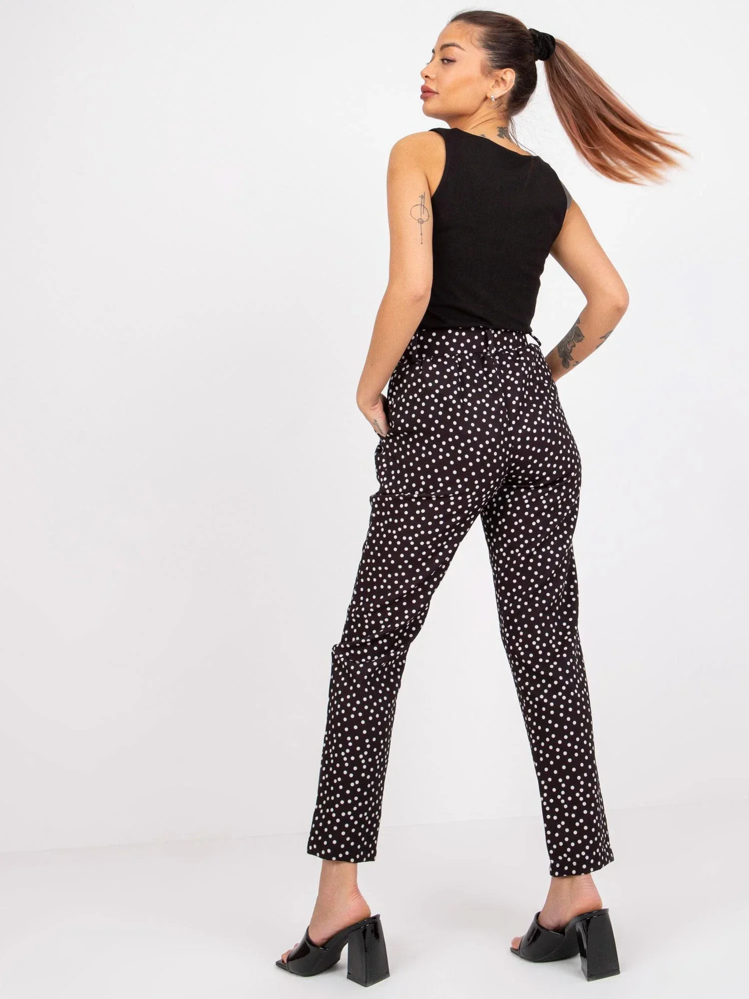 Rozměry kalhot velikosti S měřené na plocho: šířka v pase - 32 cm, délka kalhot - 93 cm, výška v pase - 25 cm.