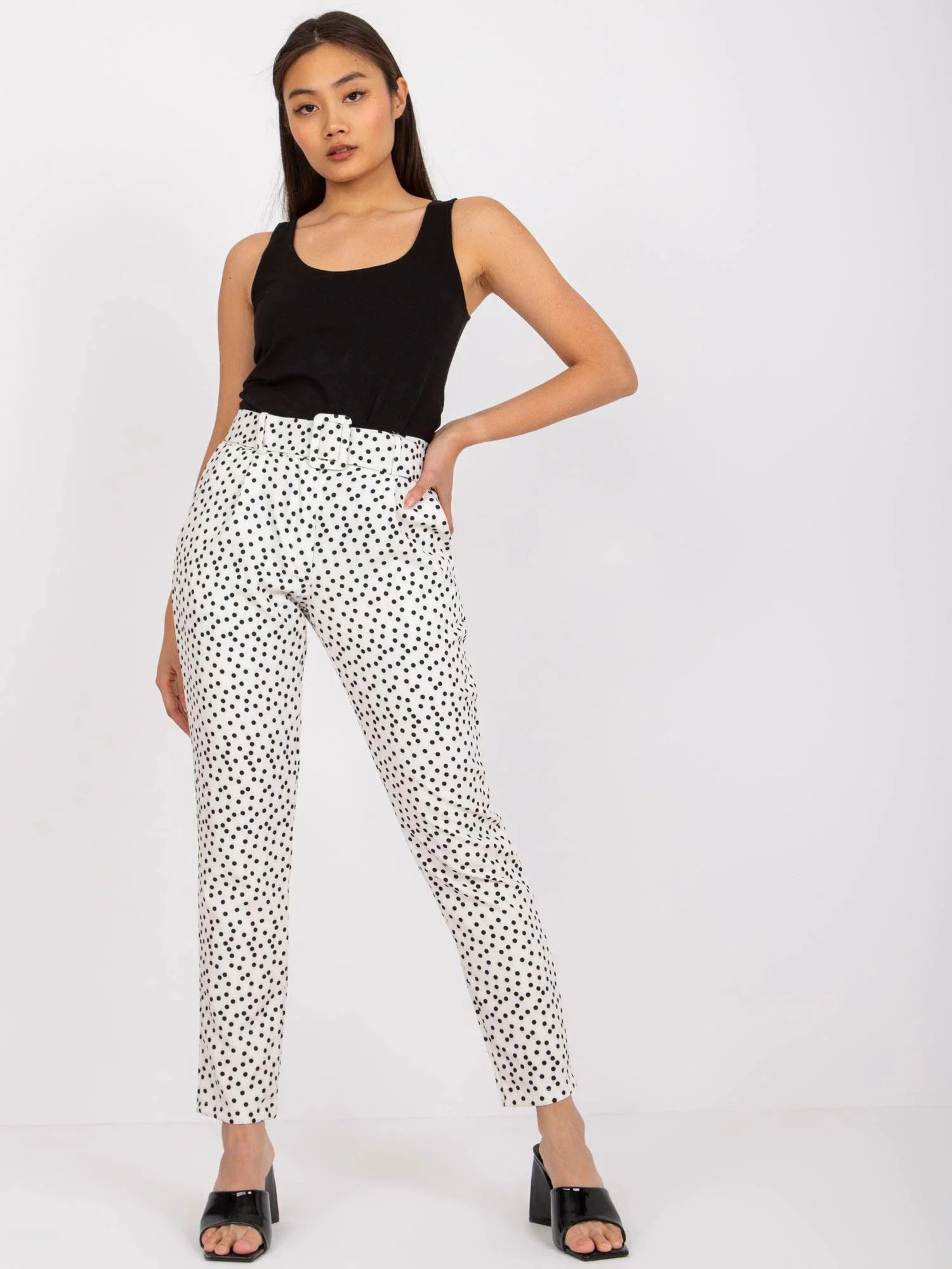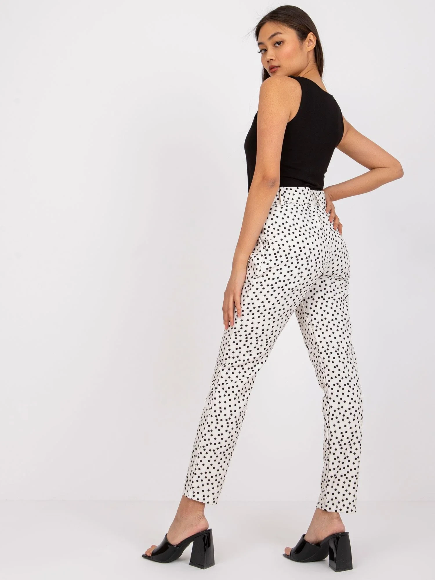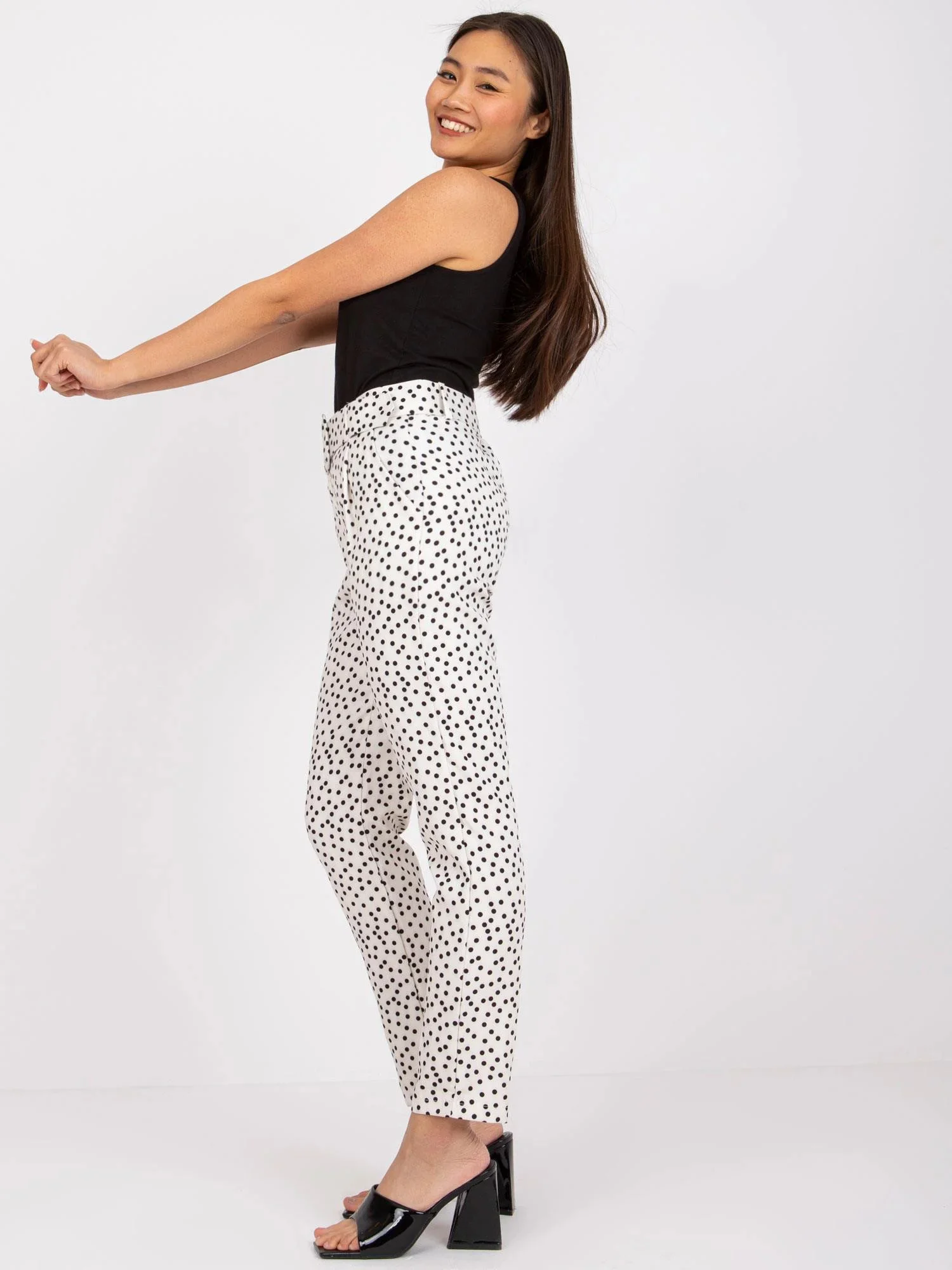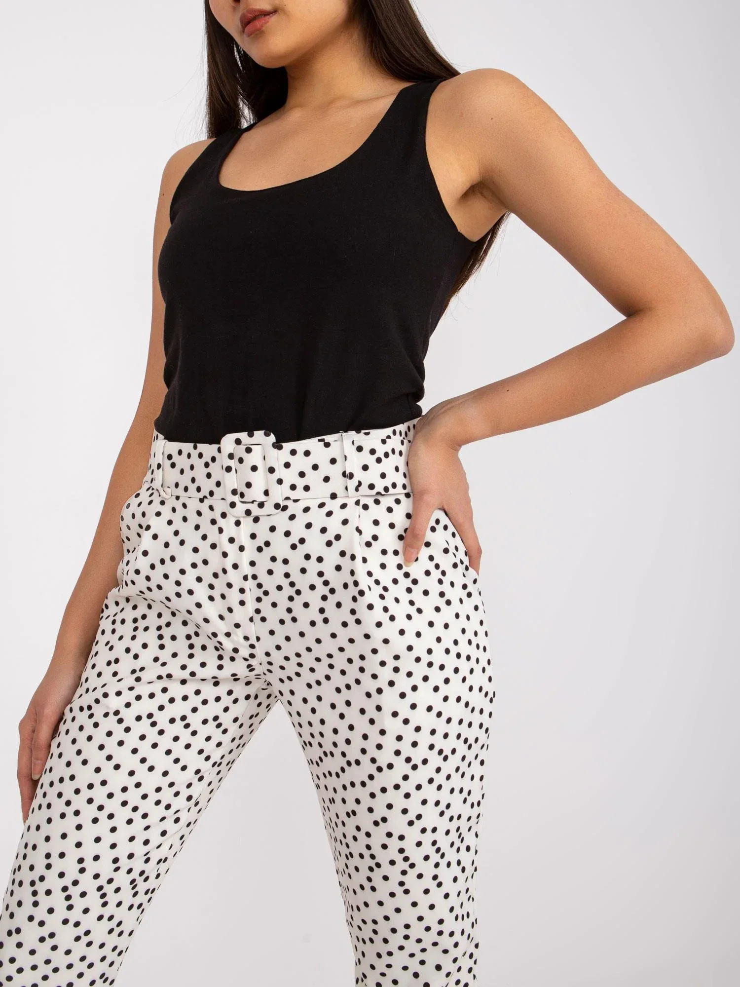 Modelka má na sobě velikost S. Rozměry modelky: výška 165 cm, prsa 83 cm, pas 64 cm, boky 89 cm.