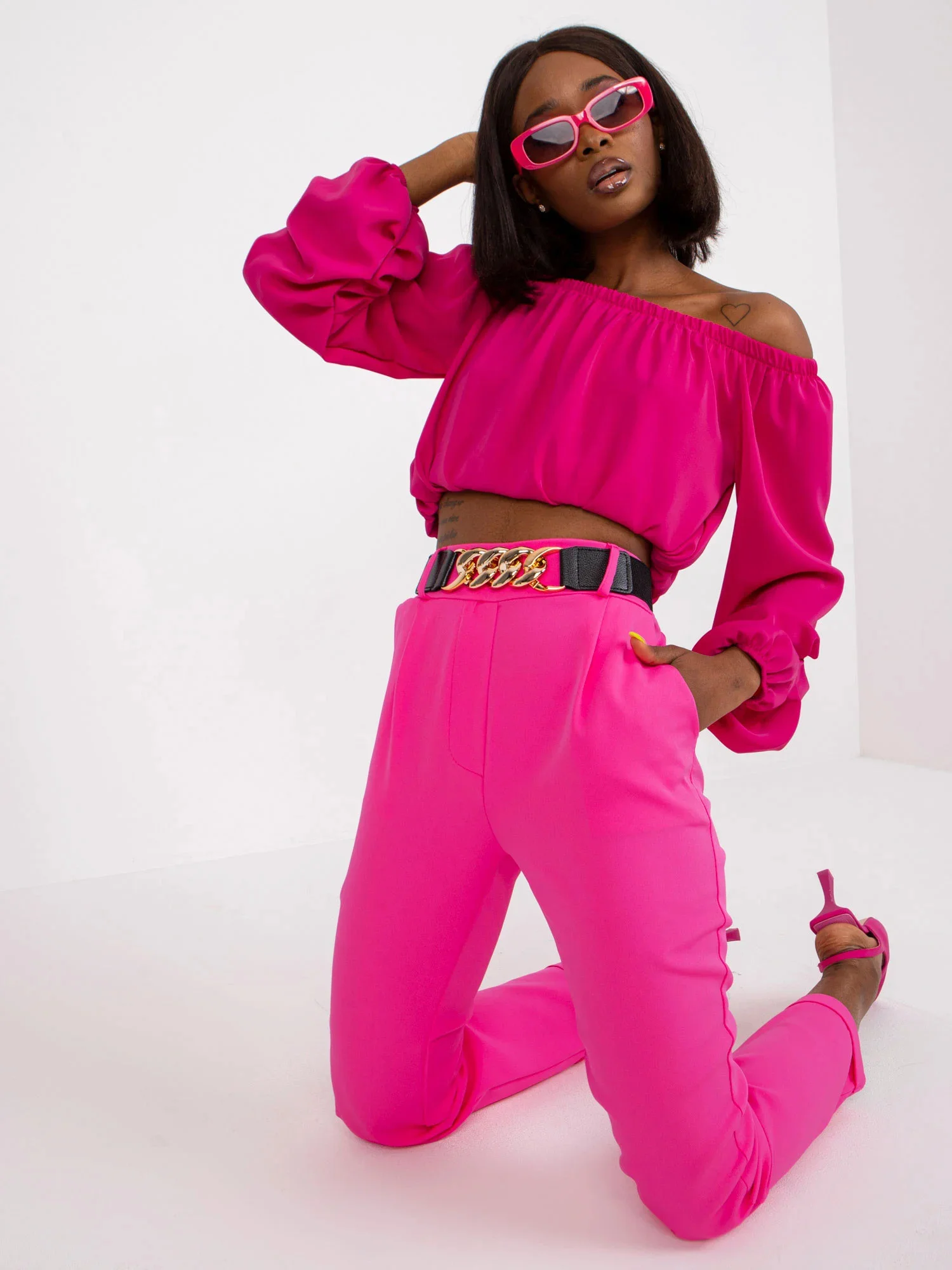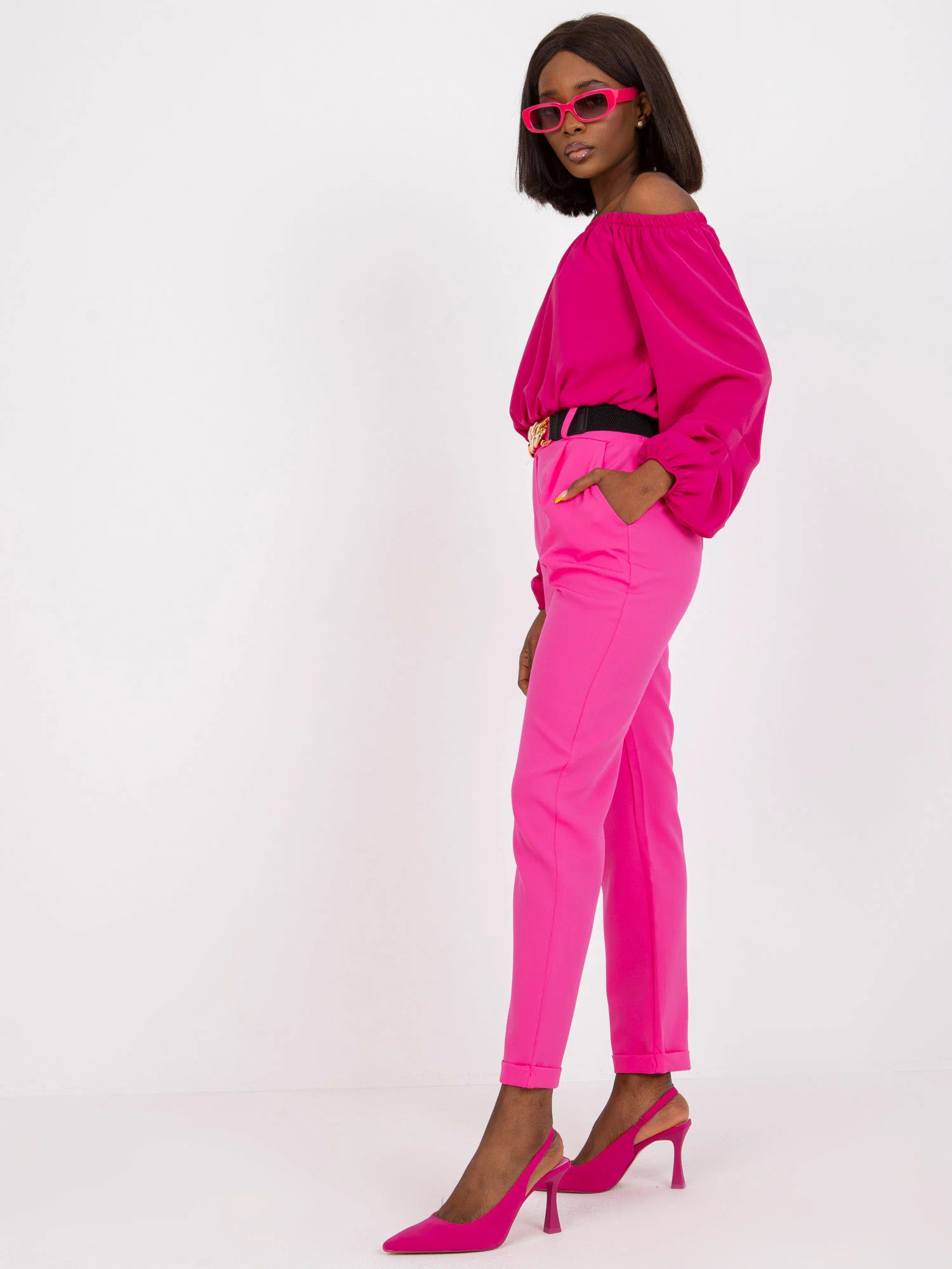 doplňky: elastický pas, kapsy, pásek