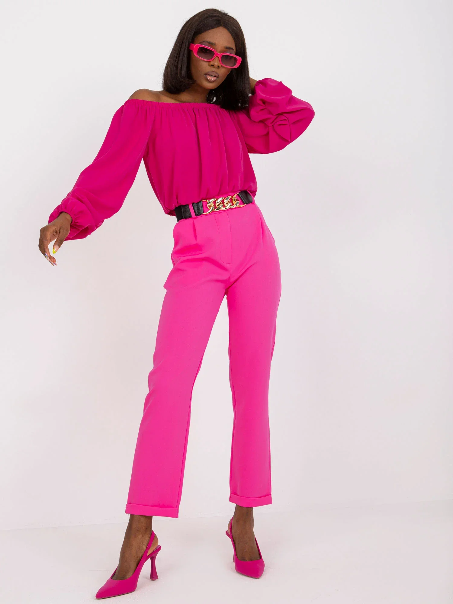 Modelka má na sobě velikost S. Rozměry modelky: výška 162 cm, poprsí 80 cm, pas 63 cm, boky 80 cm.