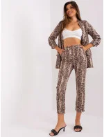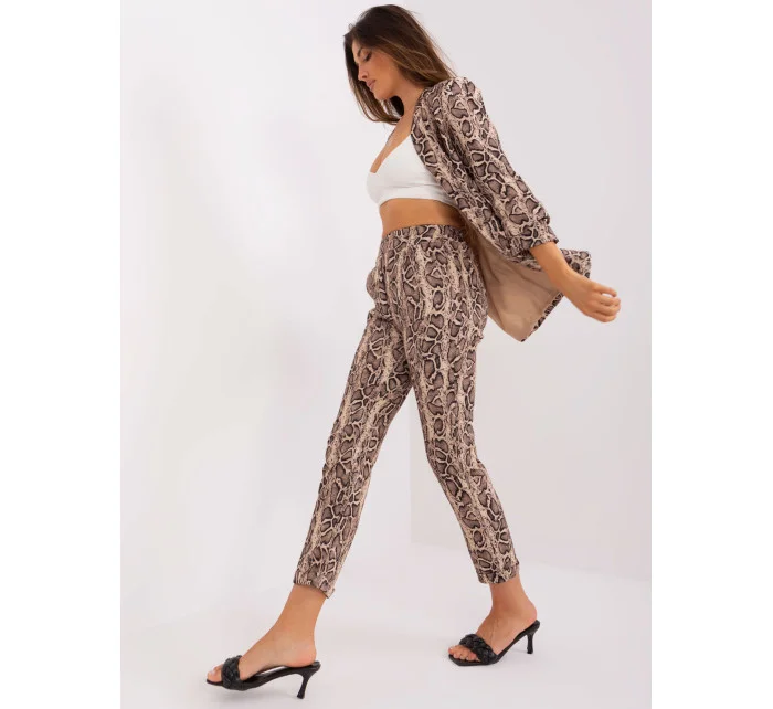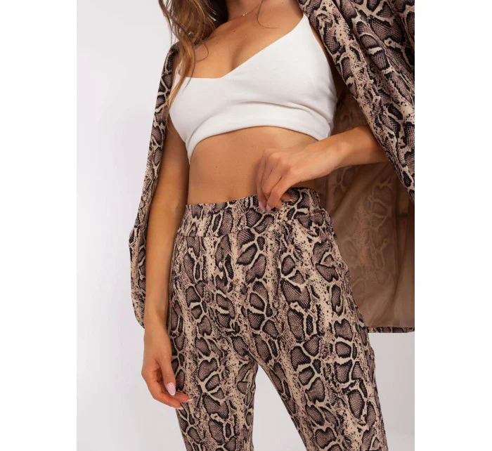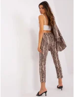 Béžové a černé kalhoty ke kostýmu se zvířecím vzorem .