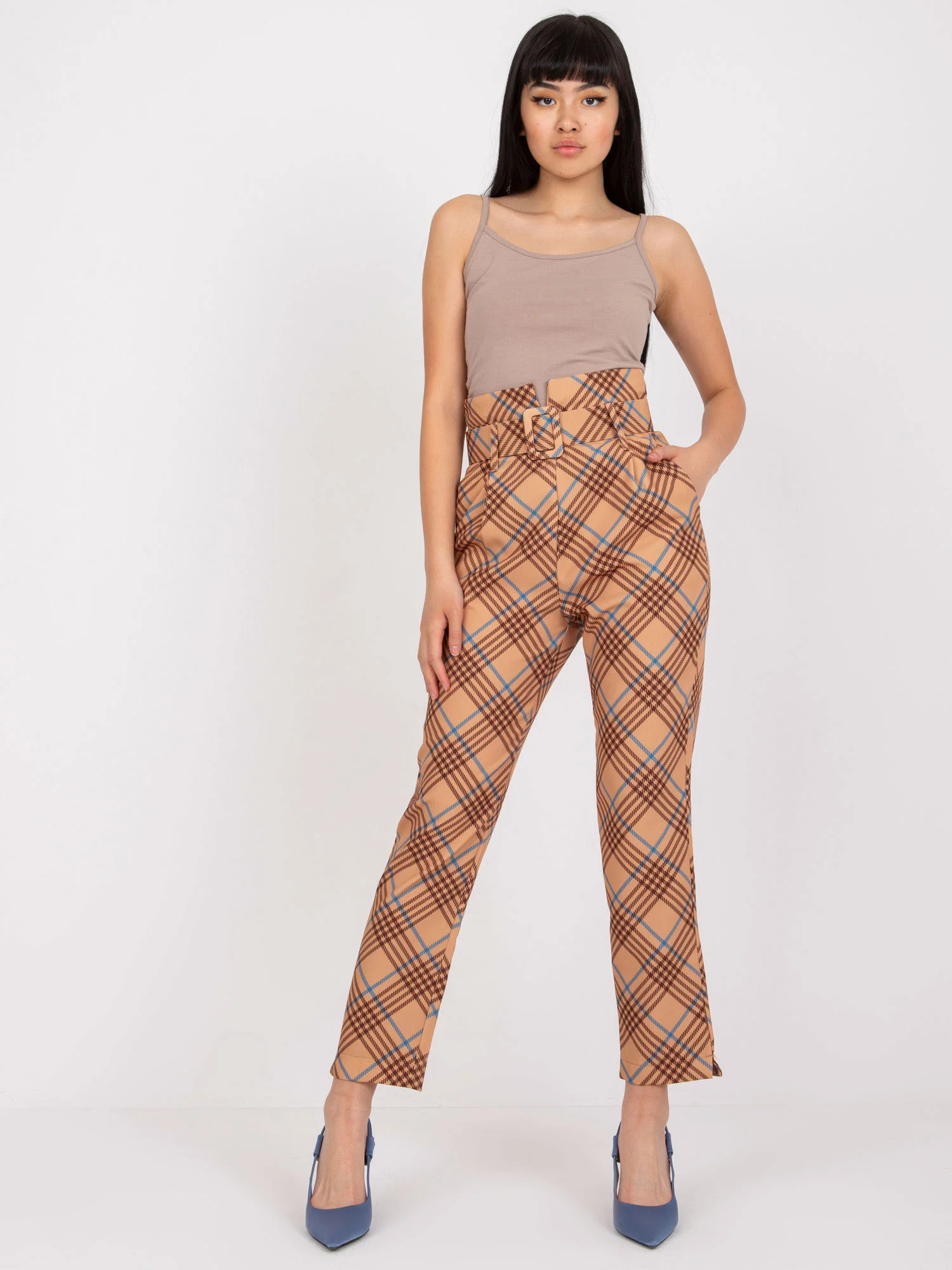 doplňky: pásek, kapsy, všitý zadní zip