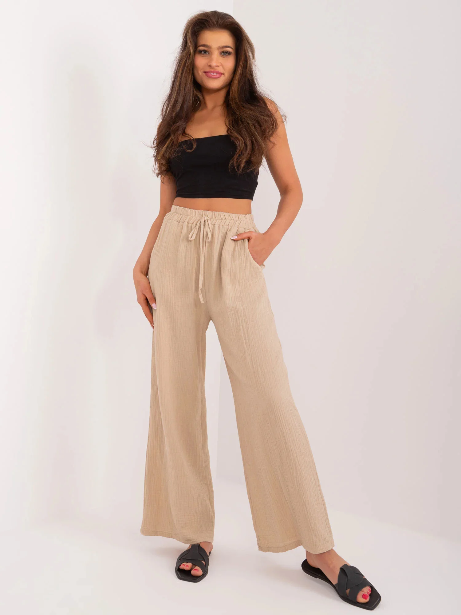 Modelka má na sobě jednu velikost. Rozměry modelky: výška 173 cm, poprsí 90 cm, pas 64 cm, boky 91 cm.
