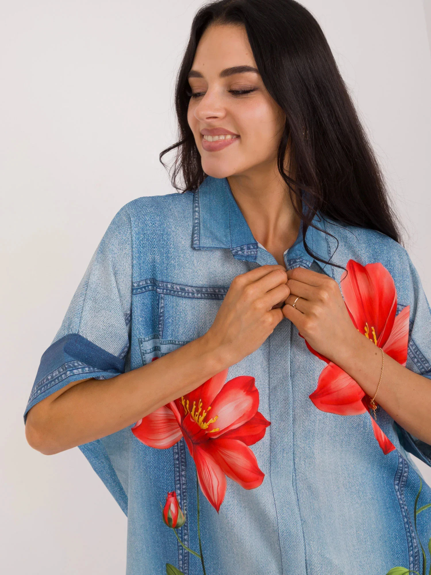 Rozměry košile ve velikosti one size měřené na plocho: šířka v podpaží - 82 cm, celková délka (vpředu) - 65 cm, celková délka (vzadu) - 77 cm .