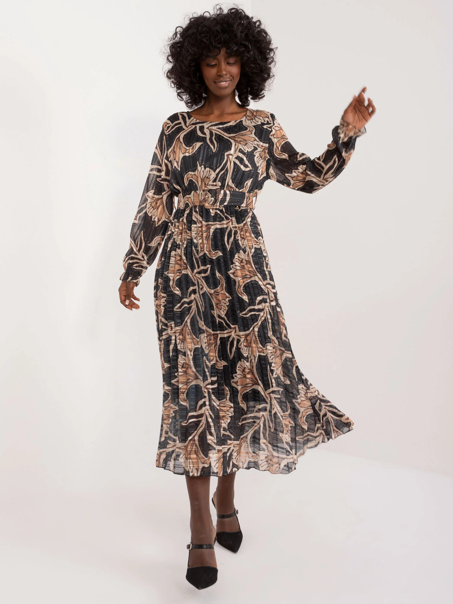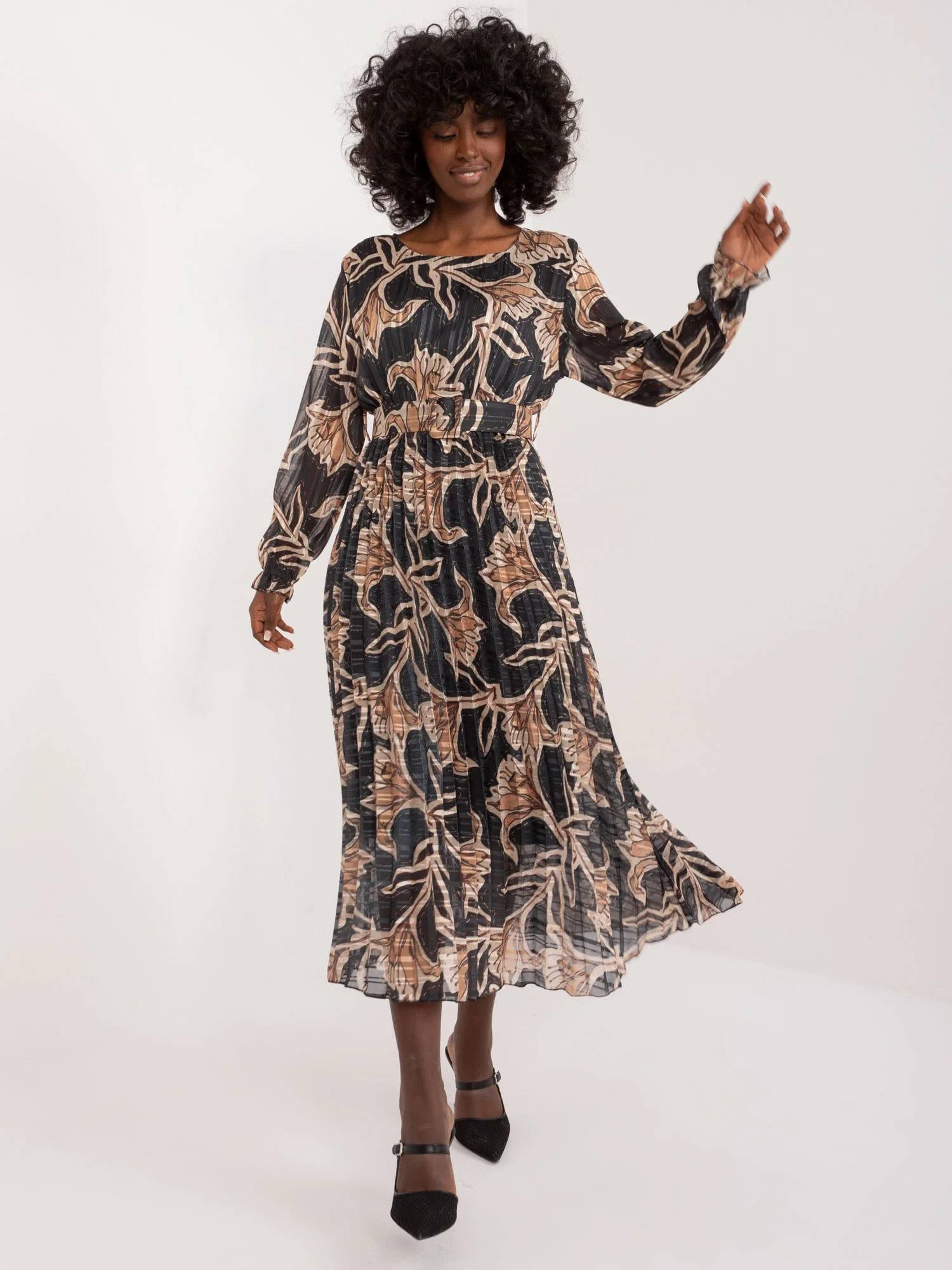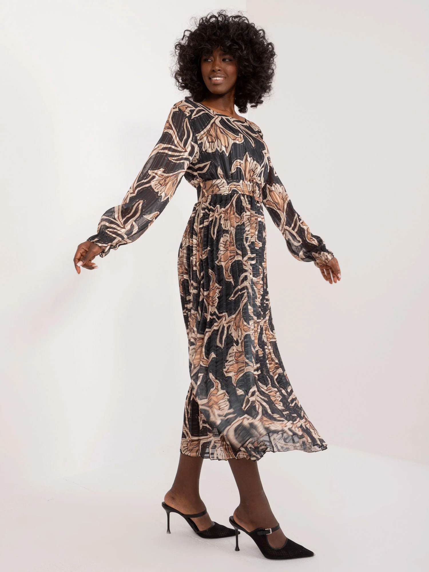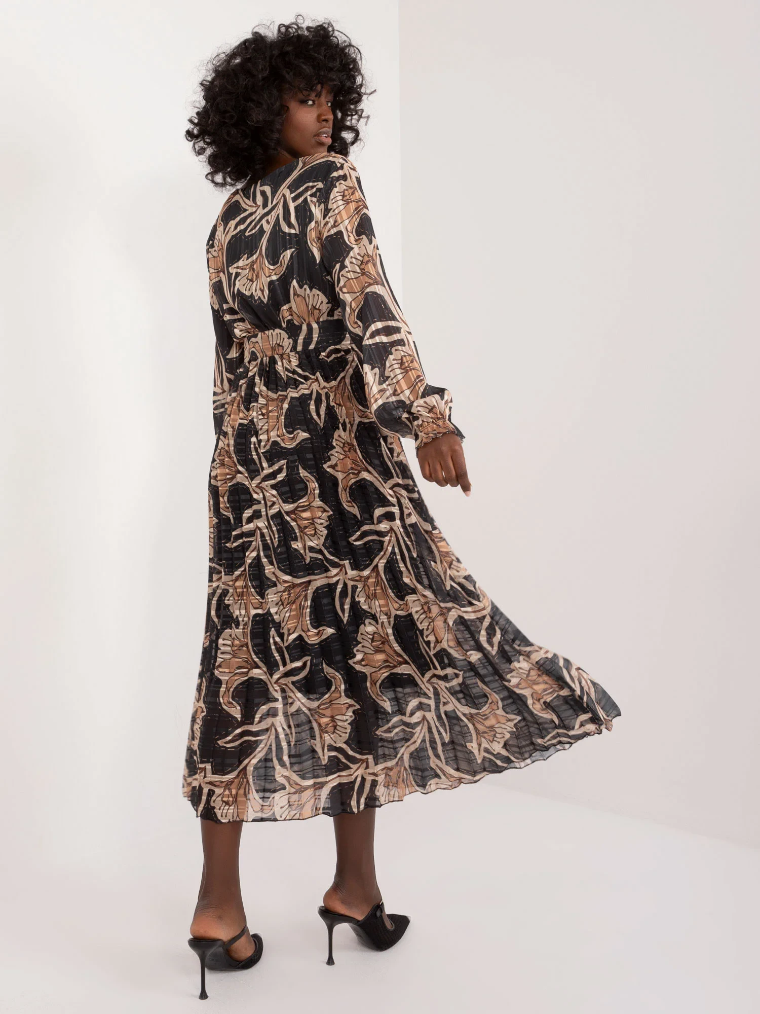 Rozměry šatů v jedné velikosti měřené na plocho: šířka v podpaží - 45 cm, délka rukávu - 59 cm, celková délka - 125 cm.