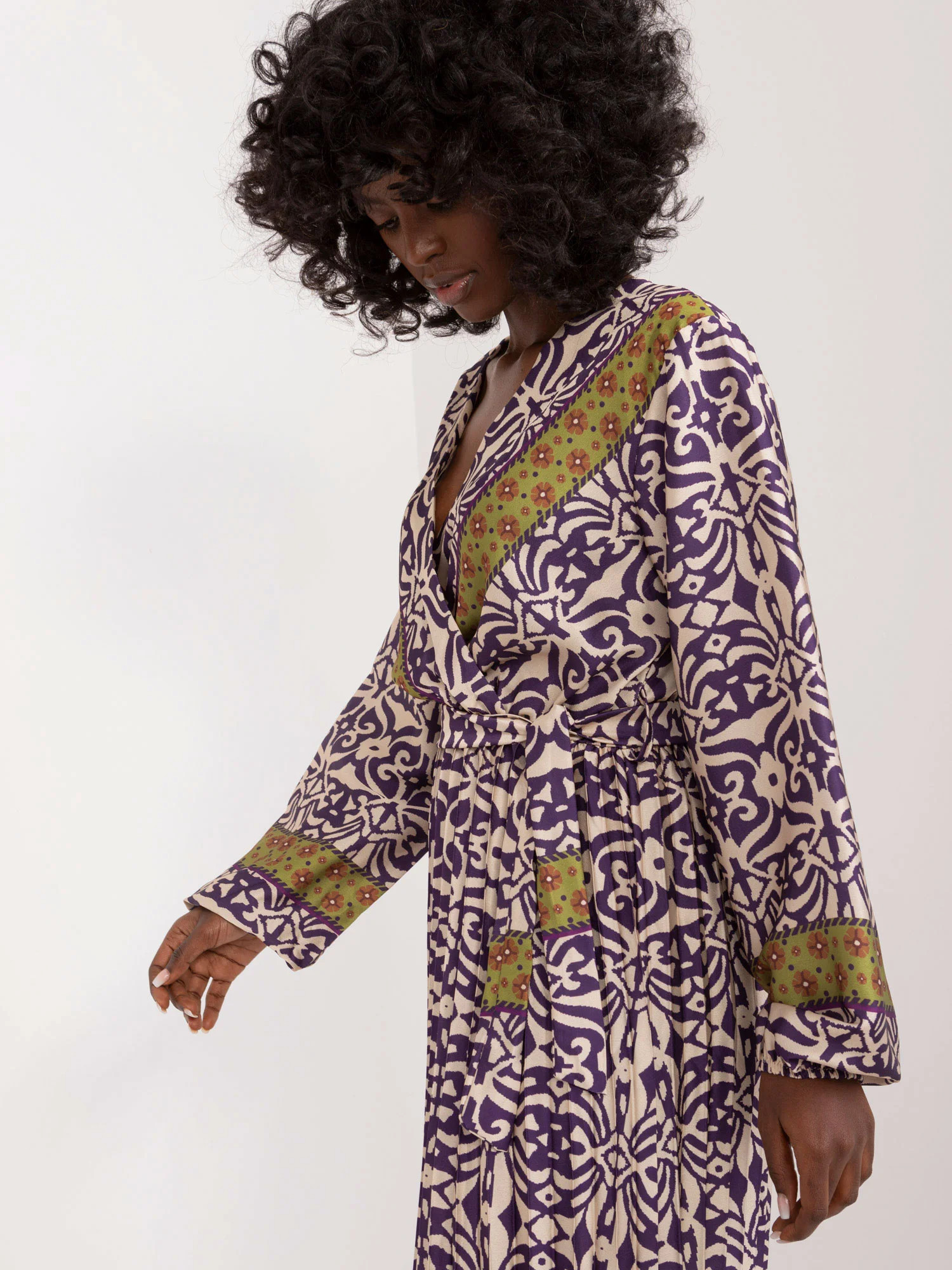 Modelka má na sobě jednu velikost. Rozměry modelky: výška 168 cm, prsa 82 cm, pas 62 cm, boky 93 cm.