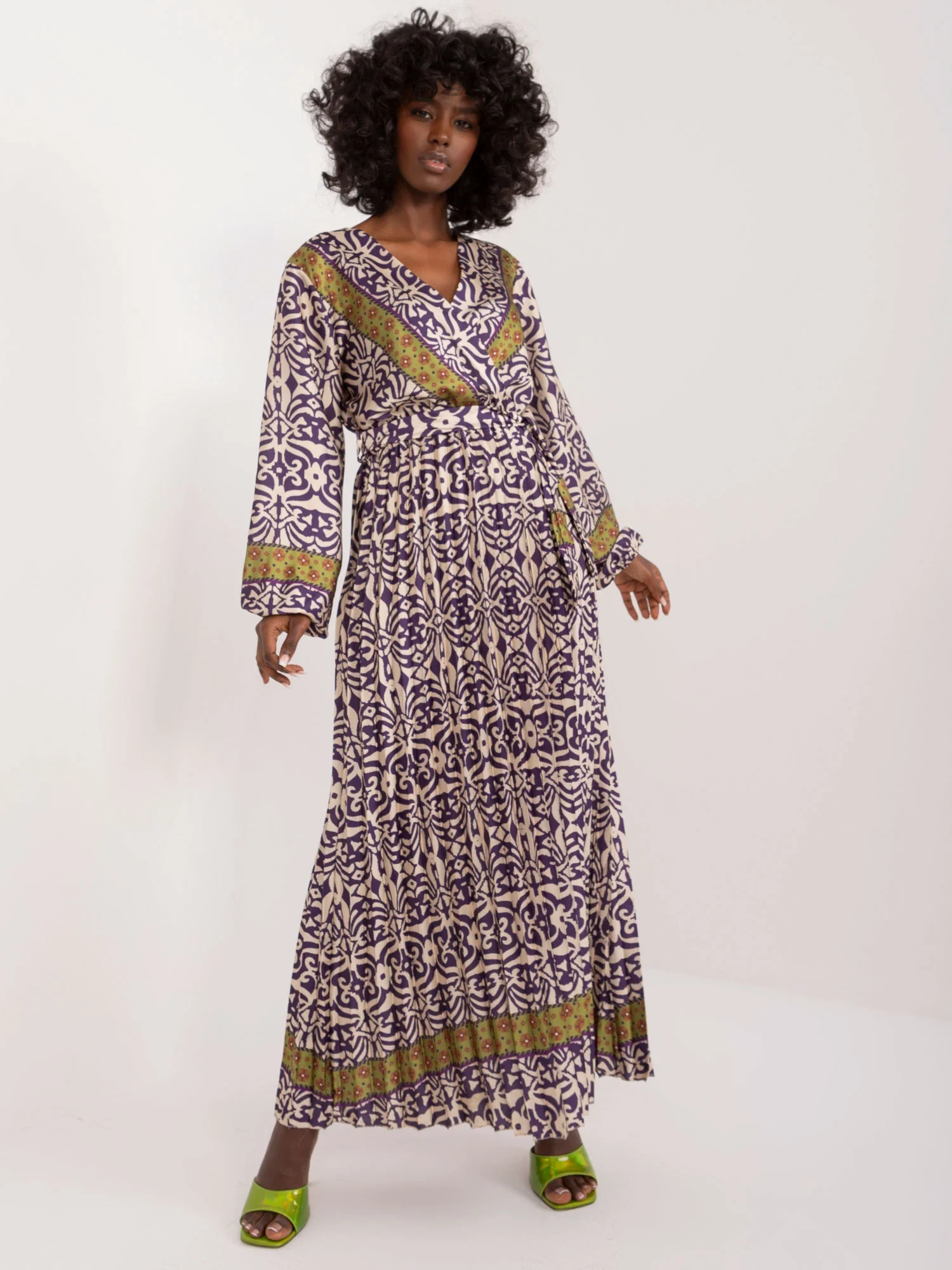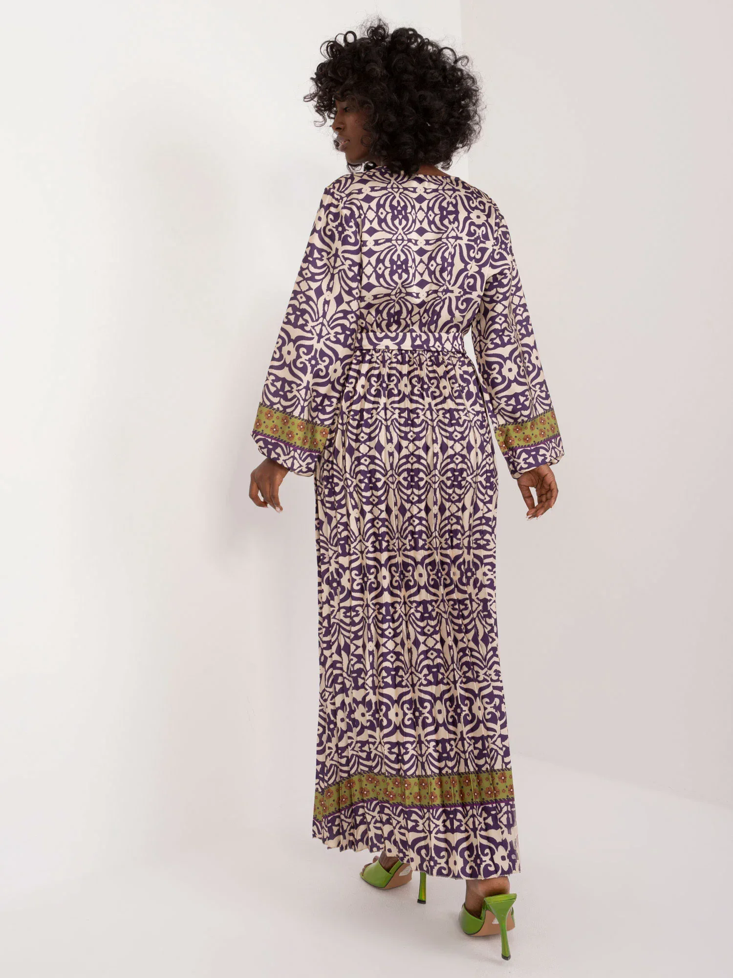 Rozměry šatů v jedné velikosti měřené na plocho: šířka v podpaží - 39 cm, délka rukávu - 57 cm, celková délka - 136 cm.