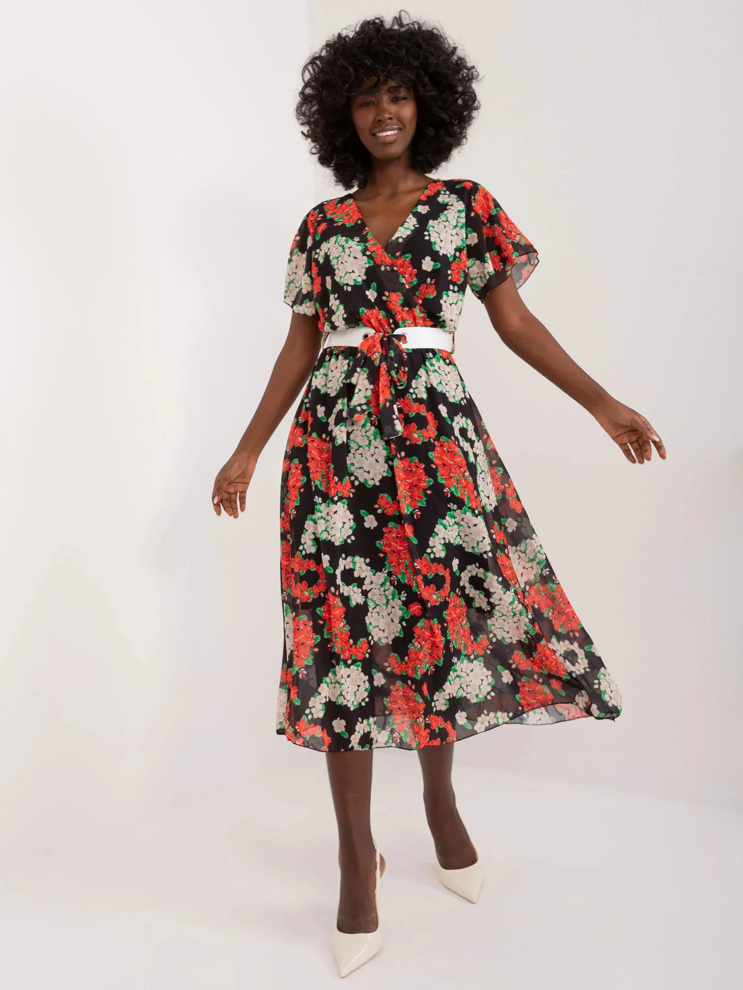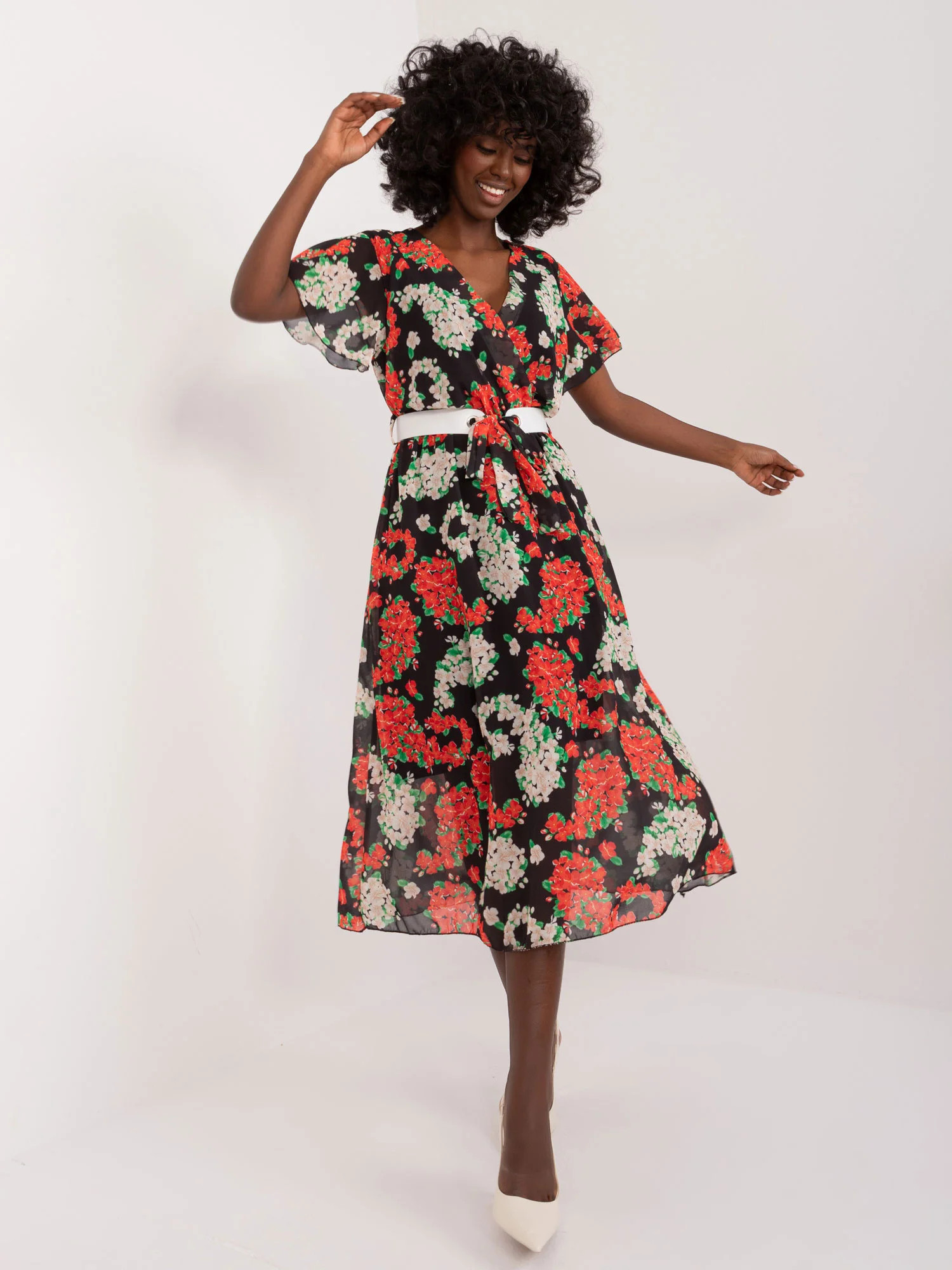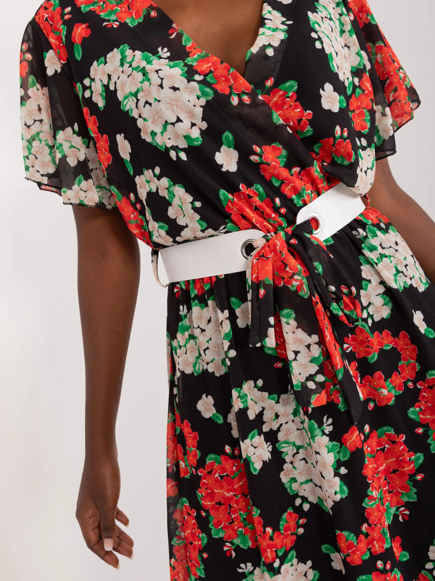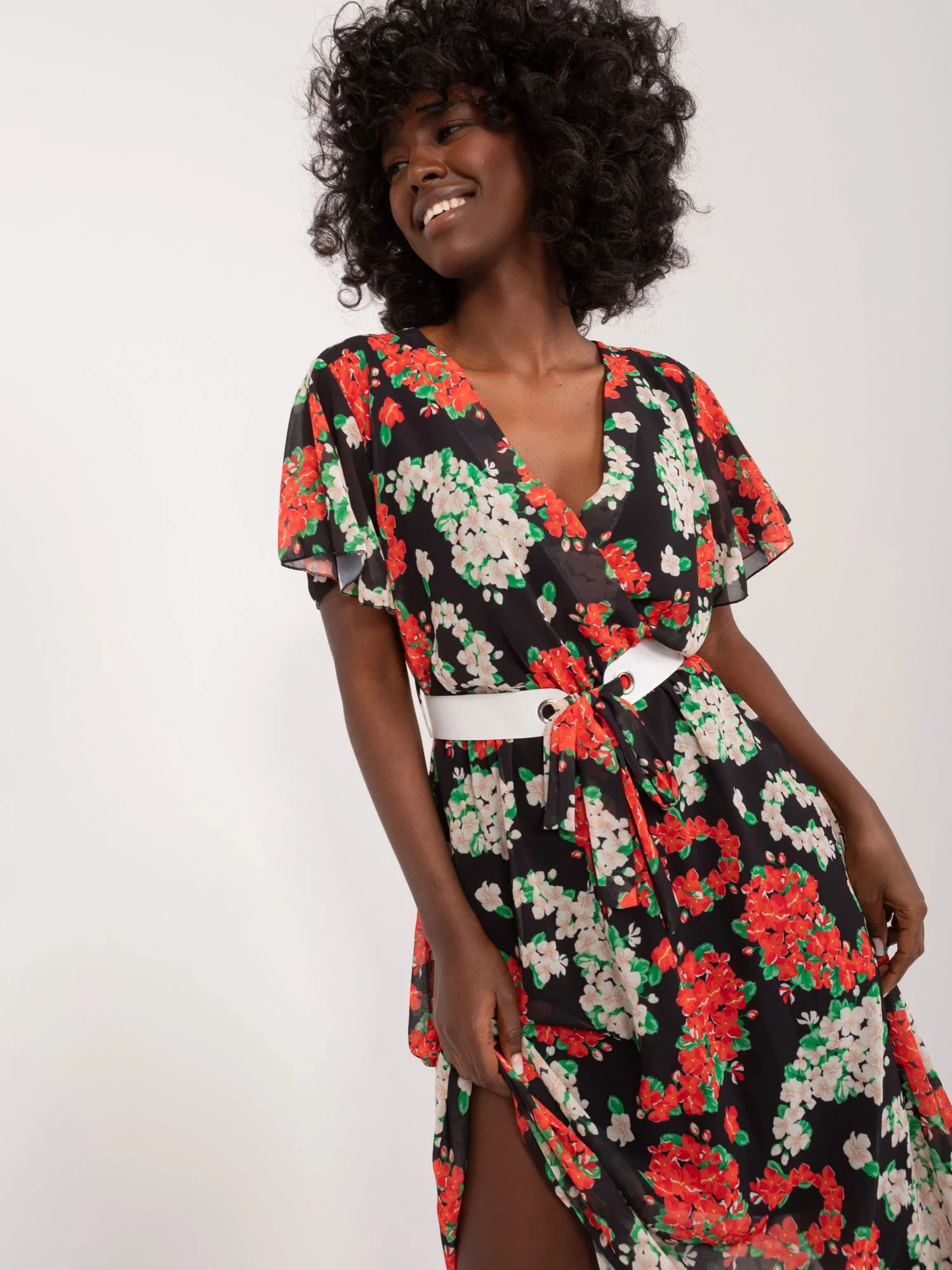 Modelka má na sobě jednu velikost. Rozměry modelky: výška 168 cm, poprsí 82 cm, pas 62 cm, boky 93 cm