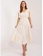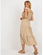 Tmavě béžové midi šaty s volánem .