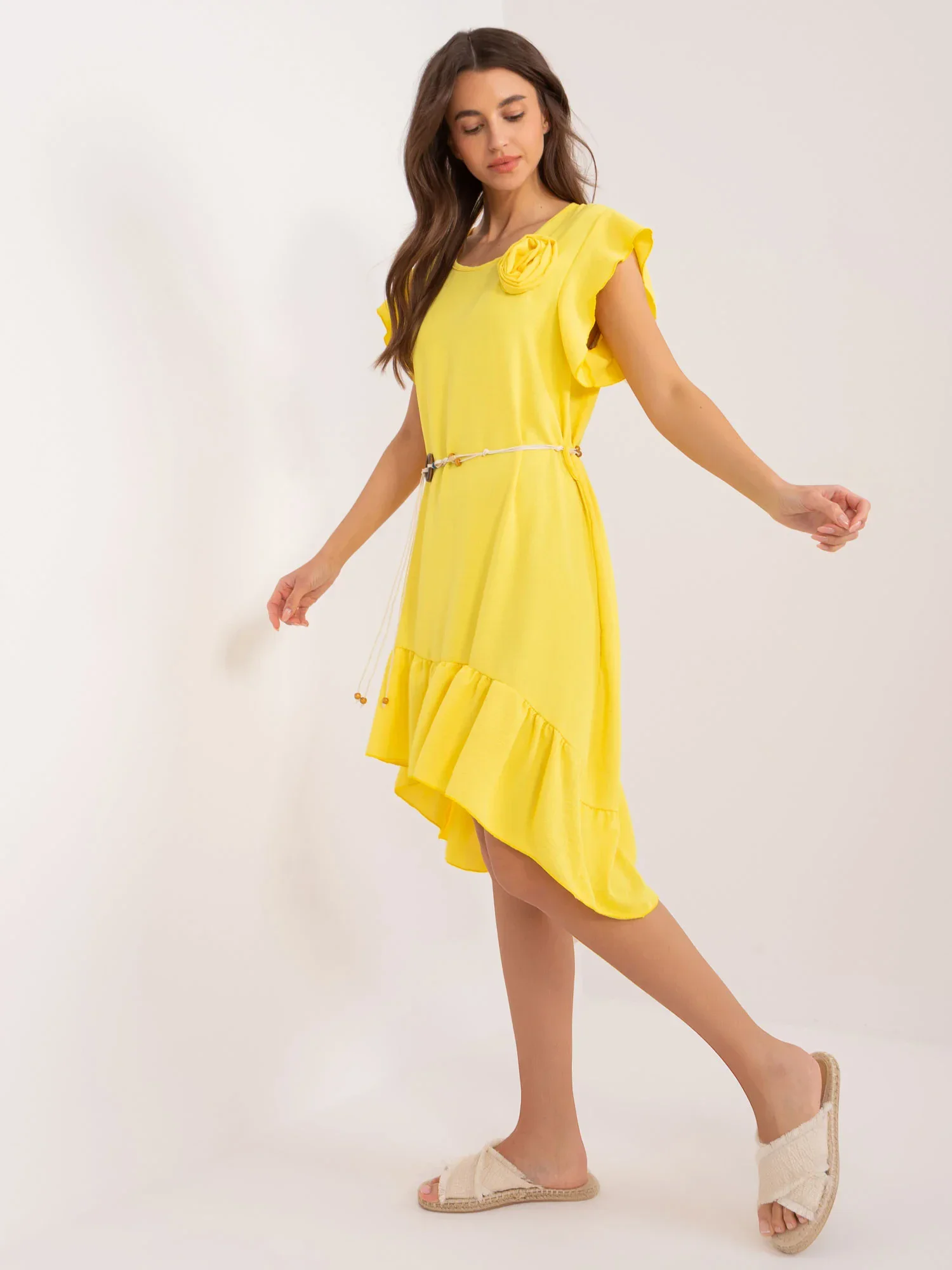 Rozměry šatů v jedné velikosti měřené na plocho: šířka v podpaží - 50 cm, celková délka - 90 (vpředu), celková délka (vzadu) 107 cm.