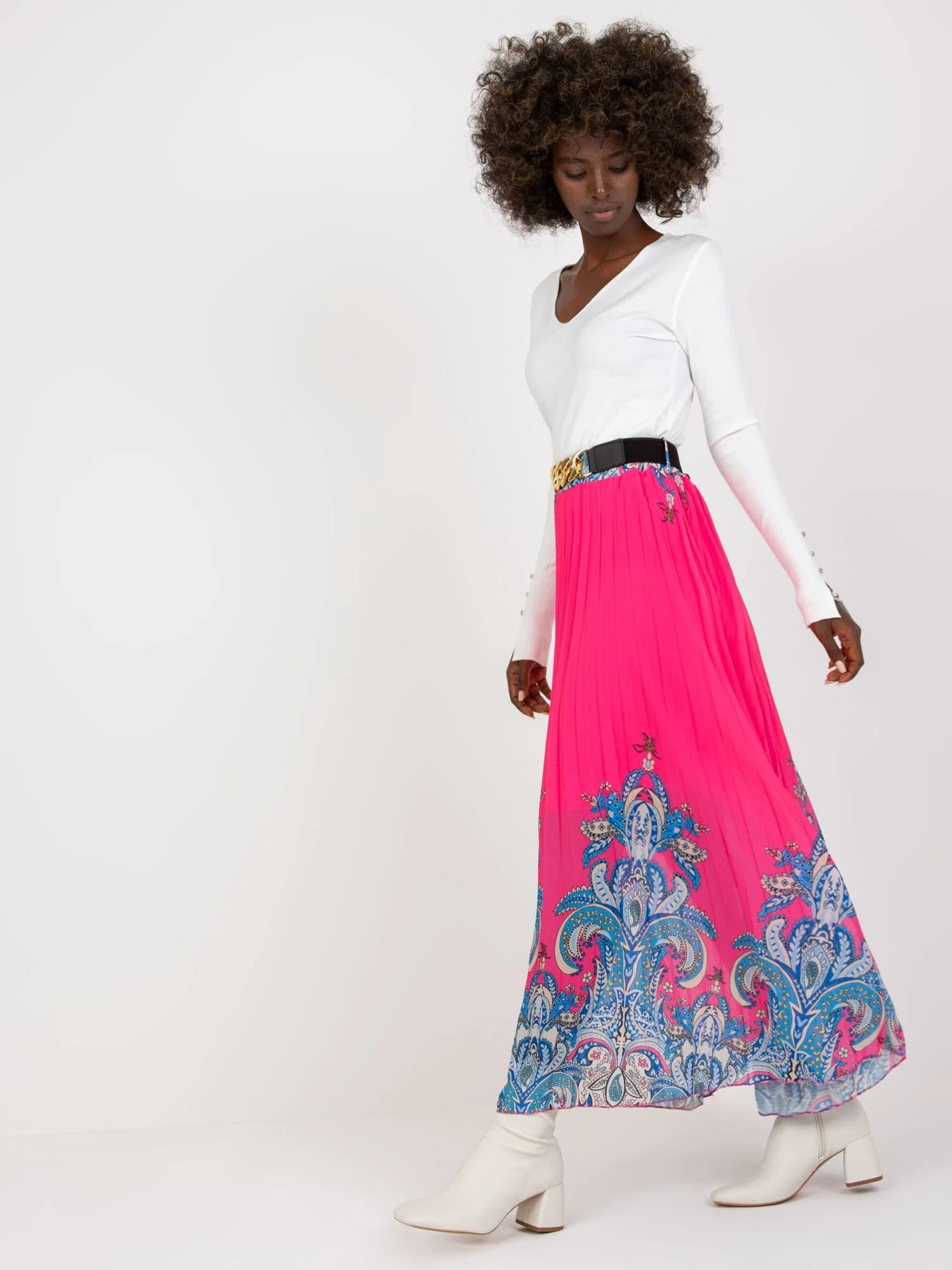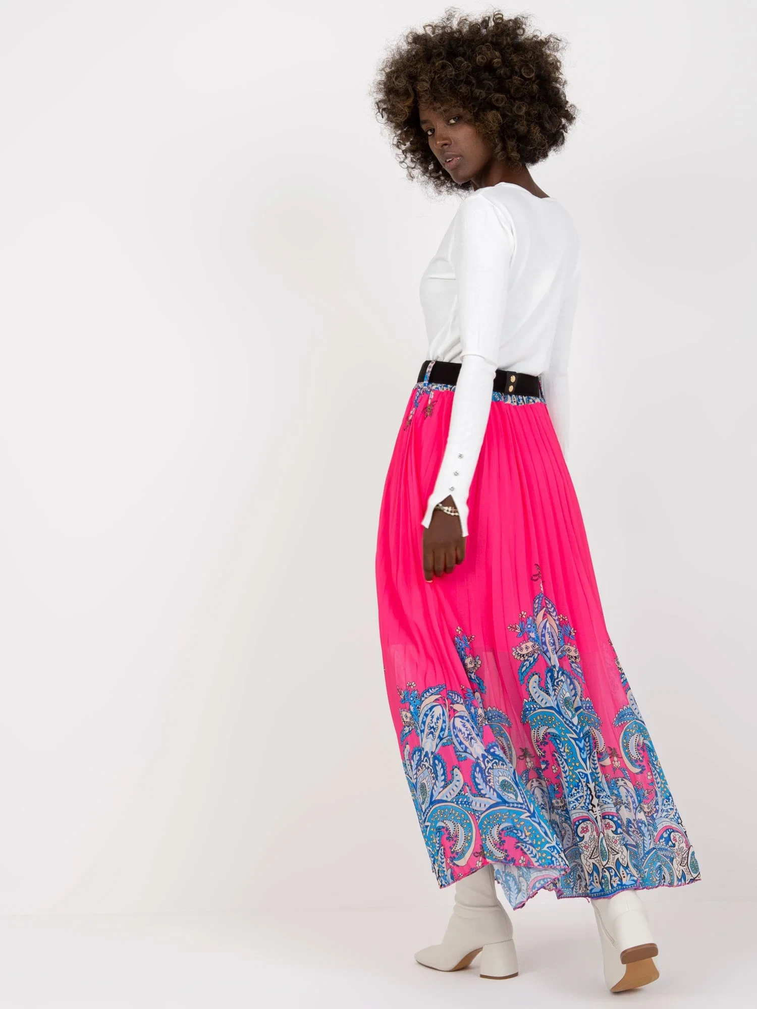 Růžová plisovaná maxi sukně s potiskem .
