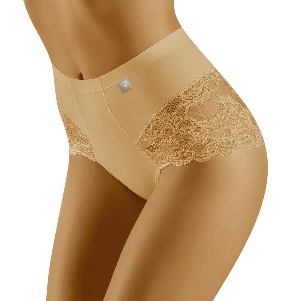Kalhotky od Wol-Bar. Model Diamond 3506. Výrobek je vyroben z 58 % z polyamidu a 42 % z elastanu. Kalhotky vysoko. Výrobek pro ženy. Výhody produktu: krásná krajka s vysokým pasem. Modelování oděvů.