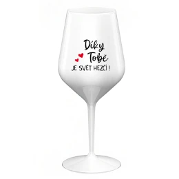 DÍKY TOBĚ JE SVĚT HEZČÍ! - bílá nerozbitná sklenice na víno 470 ml