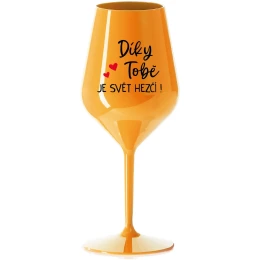DÍKY TOBĚ JE SVĚT HEZČÍ! - oranžová nerozbitná sklenice na víno 470 ml