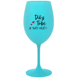 DÍKY TOBĚ JE SVĚT HEZČÍ! - tyrkysová sklenice na víno 350 ml