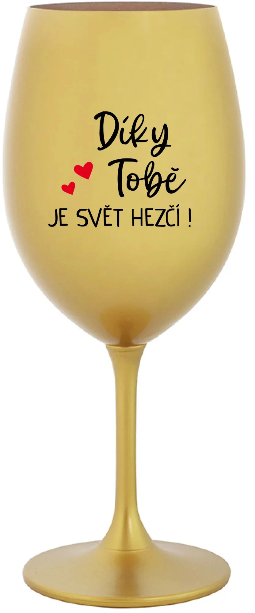 DÍKY TOBĚ JE SVĚT HEZČÍ! - zlatá sklenice na víno 350 ml