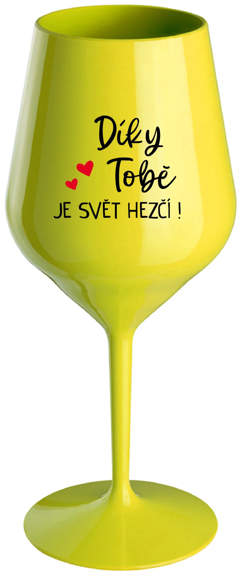 DÍKY TOBĚ JE SVĚT HEZČÍ! - žlutá nerozbitná sklenice na víno 470 ml