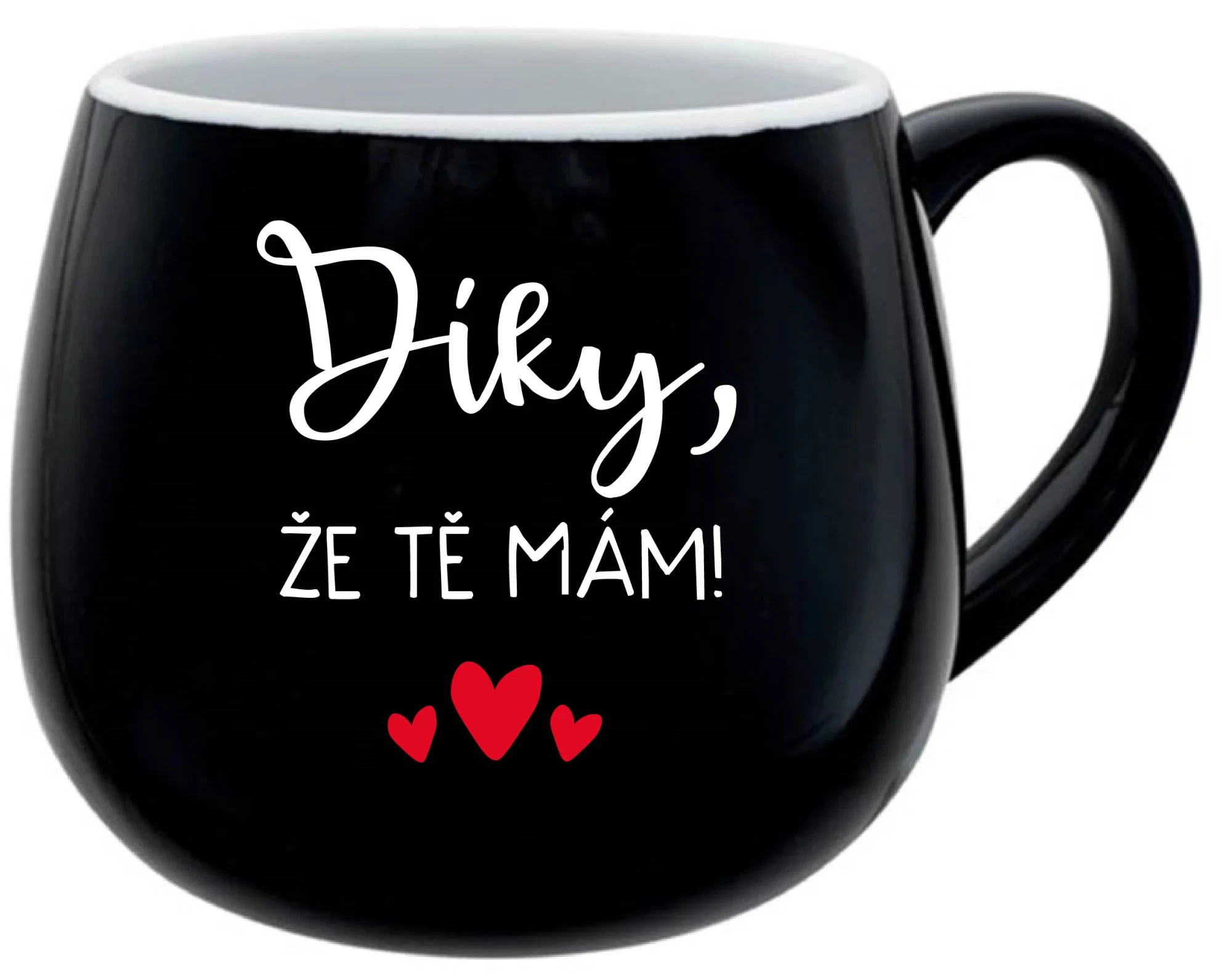 DÍKY, ŽE TĚ MÁM! - černý keramický hrníček 300 ml