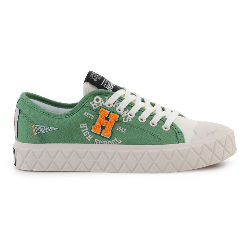 Model Palla Ace Tigers Vintage Green łączy klasyczną konstrukcję canvasowych sneakersów z unikalnym nadrukiem Tigers i subtelnym kolorem Vintage Green, inspirowanym popkulturą. Płócienna cholewka jest lekka, przewiewna i komfortowo dopasowuje się do stopy, zapewniając wygodę przez cały dzień. Wkładka wewnętrzna amortyzuje każdy krok i zwiększa komfort codziennego użytkowania.