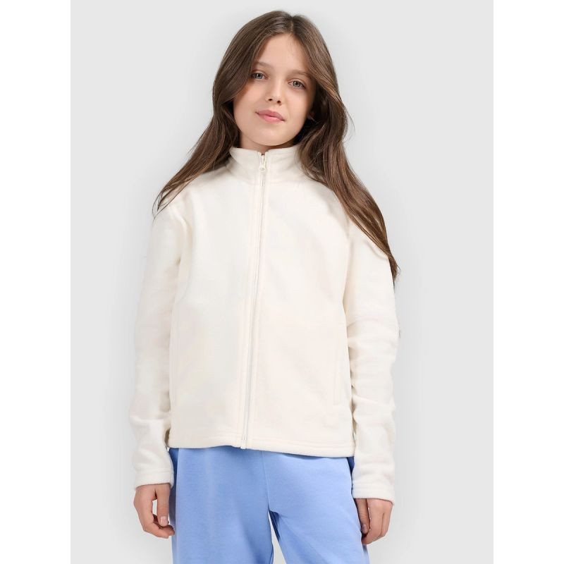 Dívčí fleece 4F má pohodlné zapínání na zip, které usnadňuje oblékání a svlékání. Díky sportovnímu charakteru a jednoduchému střihu se model dobře kombinuje s různými kusy oblečení a je praktickým doplňkem každodenního stylingu.