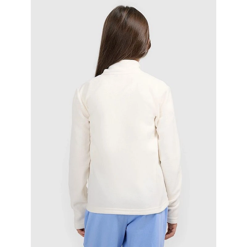 Dívčí regular fleece4F je pohodlná vrstva určená pro každodenní nošení a venkovní aktivity, s lehkou konstrukcí pro pohodlí a volnost pohybu při chůzi, cestě do školy nebo hře venku.