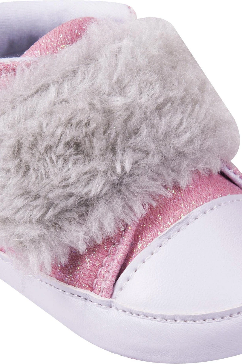 Dívčí obuv, kojenecký design, tenisky z lesklé látky, s nadýchaným zapínáním na suchý zip.