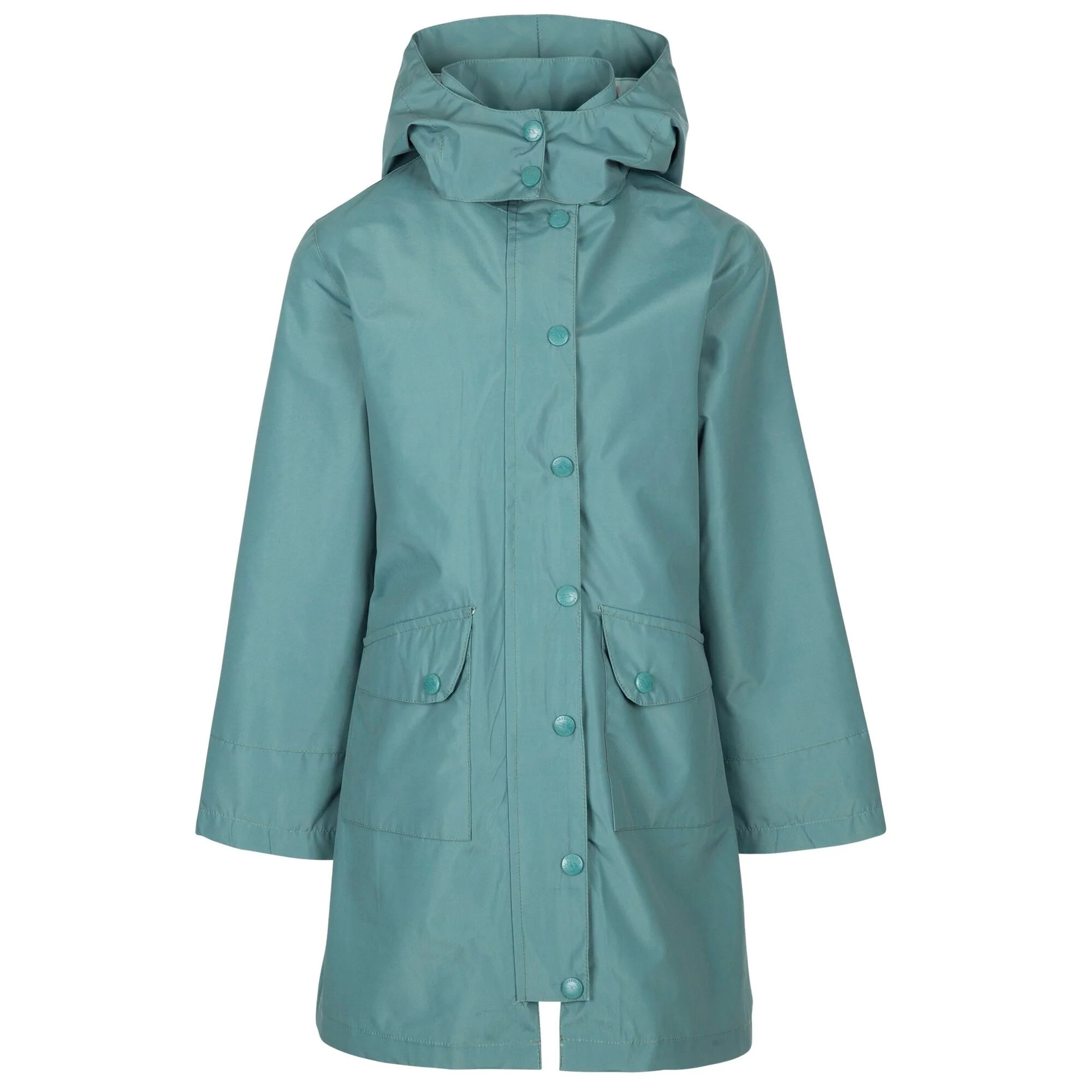Dívčí bunda do nepříznivého počasí Trespass Drizzling s vodním sloupcem 3000 mm H2O a podlepenými švy.
