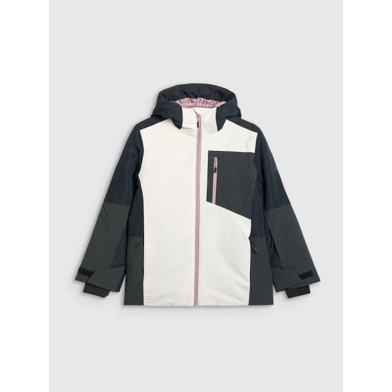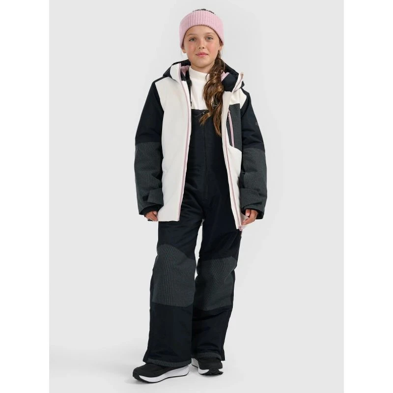 dívčí snowboardová bunda 4F je navržena pro aktivní dny na svahu a kombinuje účinnou ochranu proti chladu a vlhku s pohodlným střihem, který neomezuje v pohybu při jízdě.