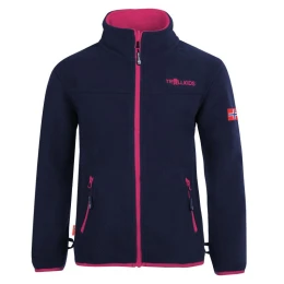 Dívčí fleecová bunda Trollkids Oppdal Jacket XT s rozepínáním na zip v barvě tmavě modré/růžové (415-114)