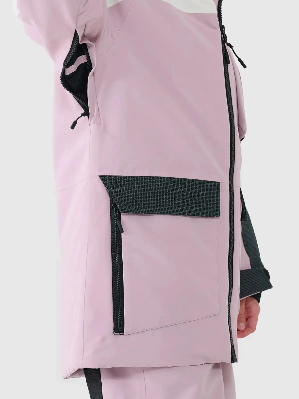 Bunda nabízí bohatý úložný prostor: dvě dvojité boční kapsy se zipem a klopou, náprsní kapsu, ramenní kapsu na suchý zip, kapsu na skipas, vnitřní kapsu na brýle a vnitřní kapsu na suchý zip.