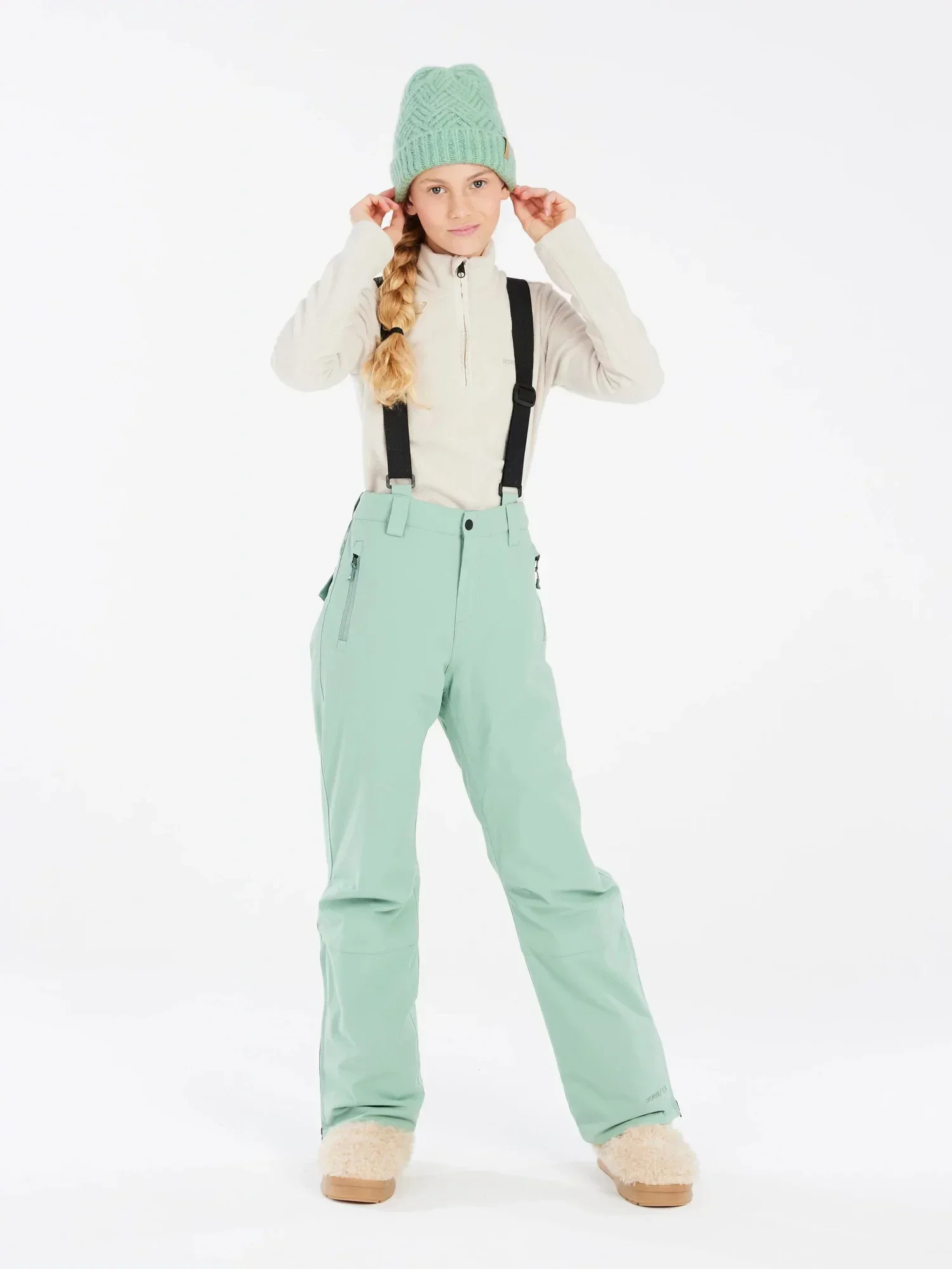 Navíc mají odnímatelné lyžařské šle, které pomáhají udržet kalhoty na svém místě.