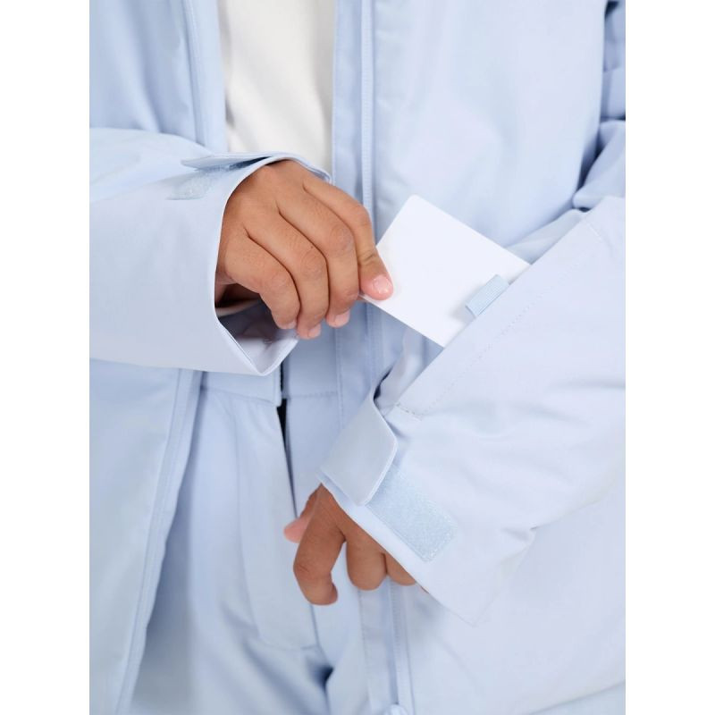 Integrovaná kapuce s nastavitelným objemem a sněhový pás poskytují účinnou ochranu před sněhem a větrem. Systém Grow-Up umožňuje dvoustupňové nastavení délky rukávů, takže se bunda přizpůsobí výšce dítěte.