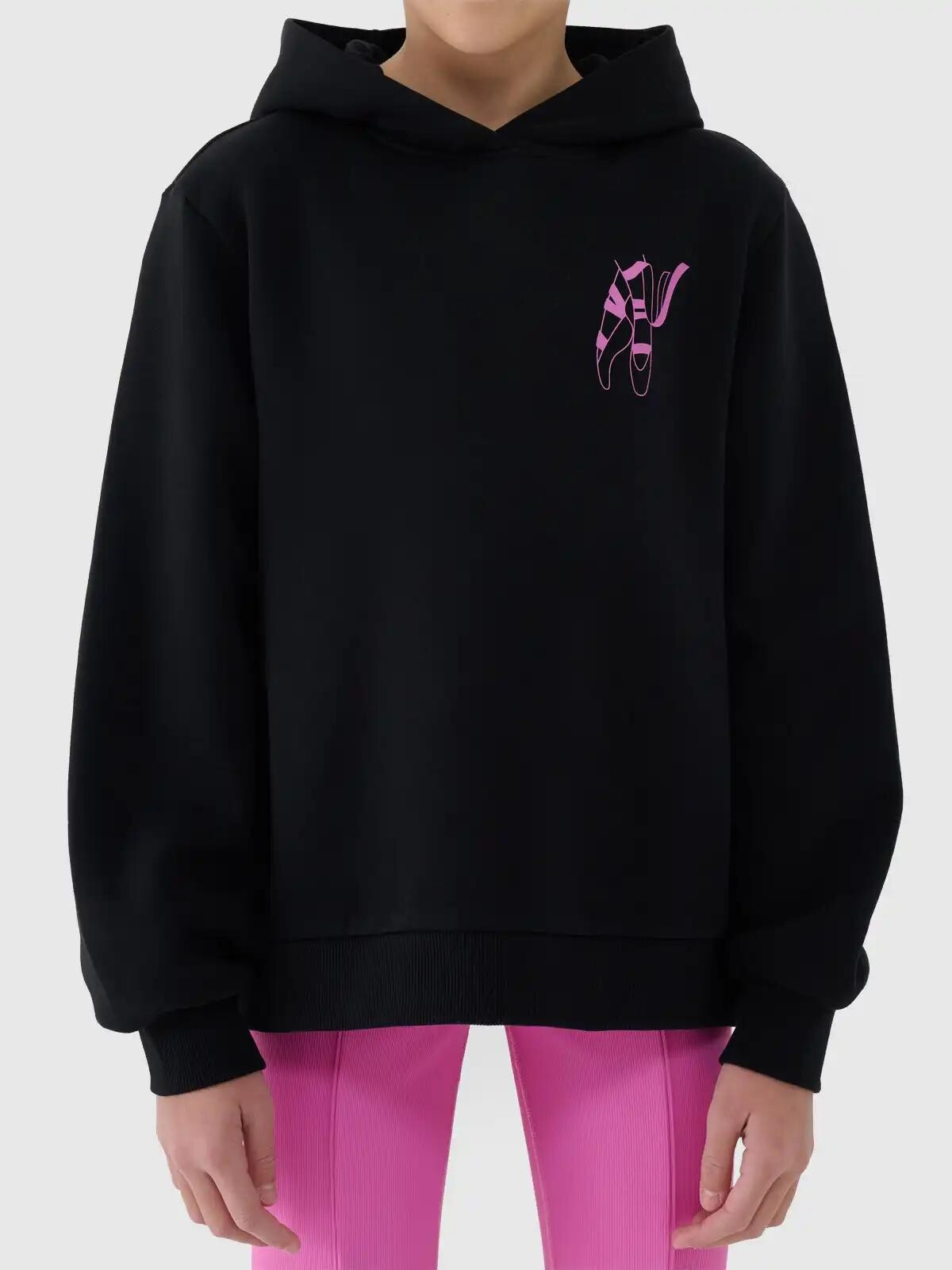 Na přední straně je umístěn originální potisk s motivem baletních špiček, který dodává mikině hravý a dívčí charakter.