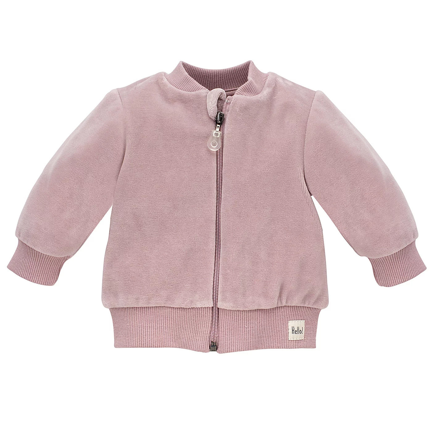 Mikina s dlouhým rukávem od Hello! kolekce je vyrobena z měkkého veluru v růžové barvě. Její střih připomíná nadčasové bombery, které se staly módní klasikou. Mikina se zapíná na praktický zip, díky kterému se snadno a rychle svléká a obléká. Zip má praktickou rukojeť, která dětem usnadňuje učení oblékání. Zip je zajištěn textilním odtrhávacím proužkem, který chrání krk dítěte při zapínání. Rukávy, spodní část a výstřih jsou zakončeny ozdobným žebrováním, které udržuje oděv na svém místě při každodenních aktivitách. Je zde nenápadné "Ahoj!" na levé straně zipu. Mikina se skvěle hodí k mnoha stylům. Je vyrobena v Polsku z pečlivě testovaných materiálů od polských dodavatelů a má certifikát "Bezpečné pro děti". Modelka na obrázku měří 74 cm a nosí velikost 74. Mikina je k dispozici také v šedé barvě.