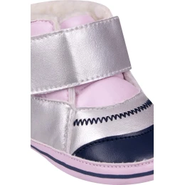 Dívčí boty, kojenecký designór tenisky z lesklé látky, s nadýchaným zateplením a zapínáním na suchý zip.
