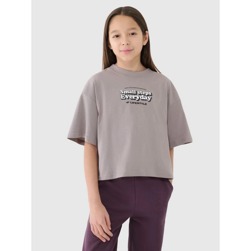 T-shirt dziewczęcy 4F to doskonały wybór do casualowych oraz sportowych stylizacji. Dzięki swojemu oversizowemu krojowi i skróconemu fasonowi, koszulka zapewnia pełną swobodę ruchów i jest idealna na co dzień – zarówno do szkoły, jak i na treningi.