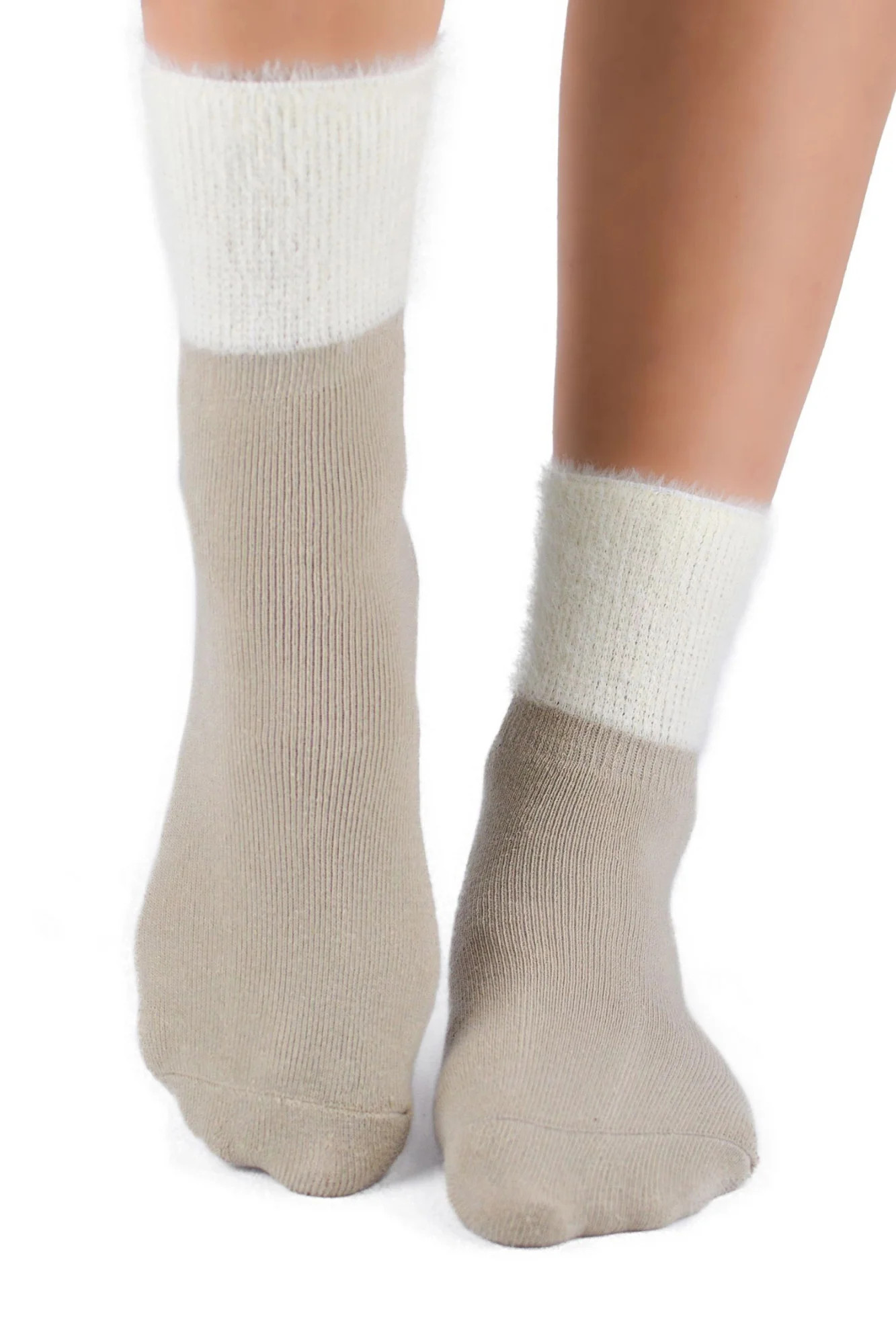 Dívčí ponožky 001 W02 NOVITI - béžová barva - z vysoce jakostní bavlny - s přehnutým lemem - měkké a teplé