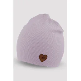 Dívčí čepice z podměrečné žebrované bavlny s malou nášivkou. Složení: 95% bavlna, 5% elastan